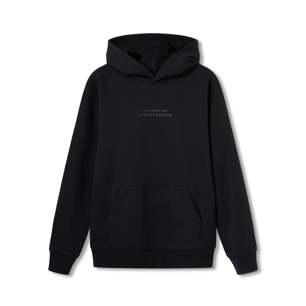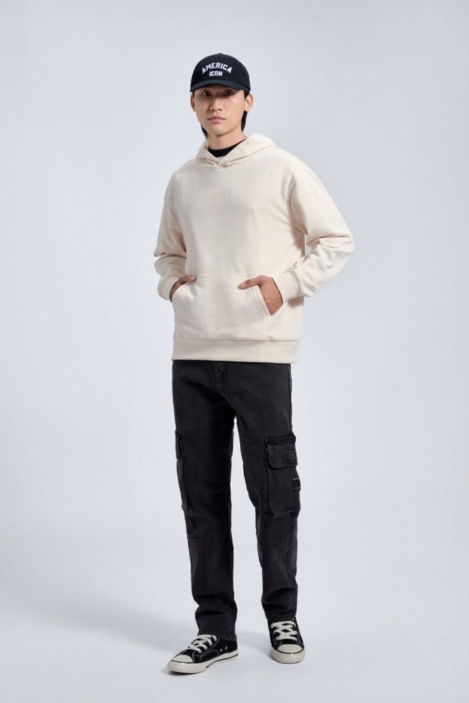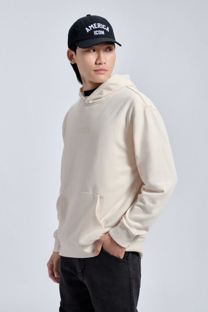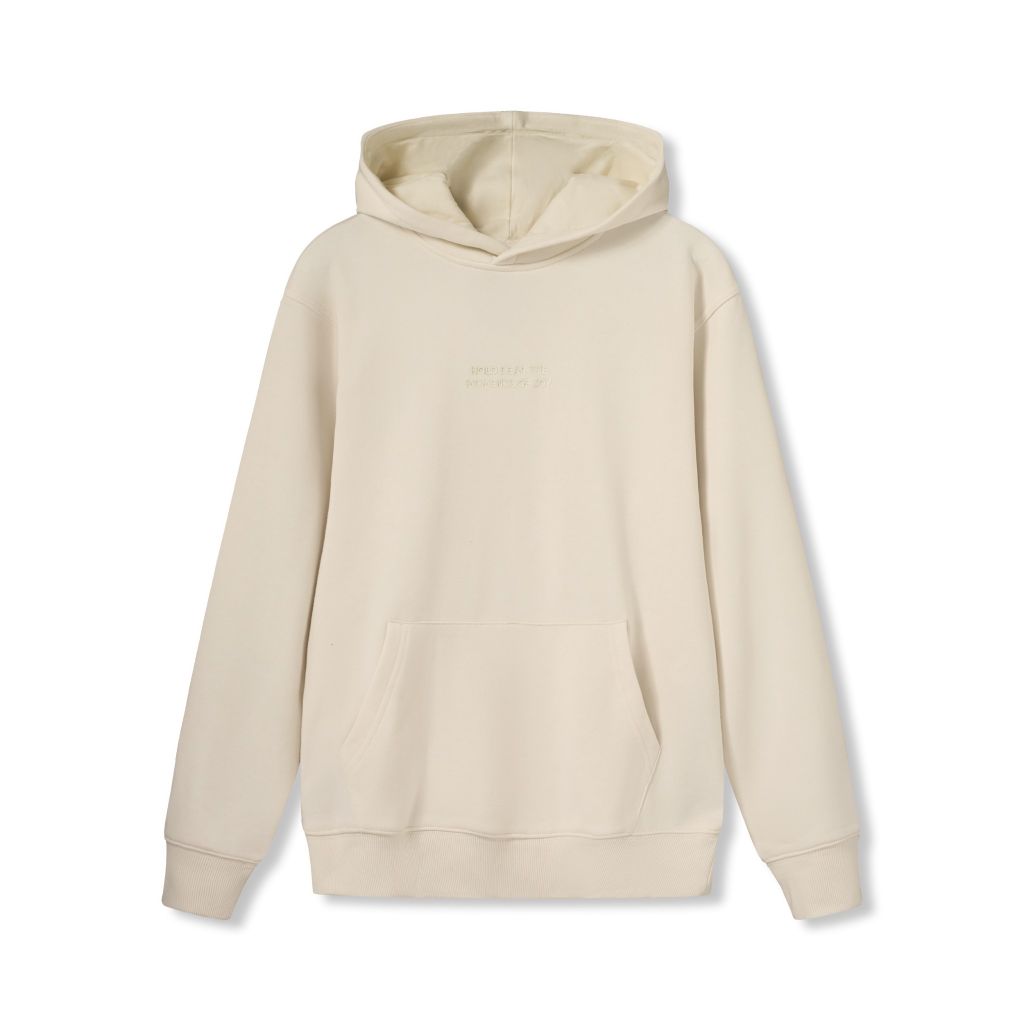 Điểm nhấn của áo là chi tiết in cao cùng màu vải với các thông điệp mang lại cảm hứng sống tích cực. Kết hợp với ba màu trung tính dễ phối đồ, thiết kế túi thang phía trước giúp giữ ấm tay và tiện dụng.