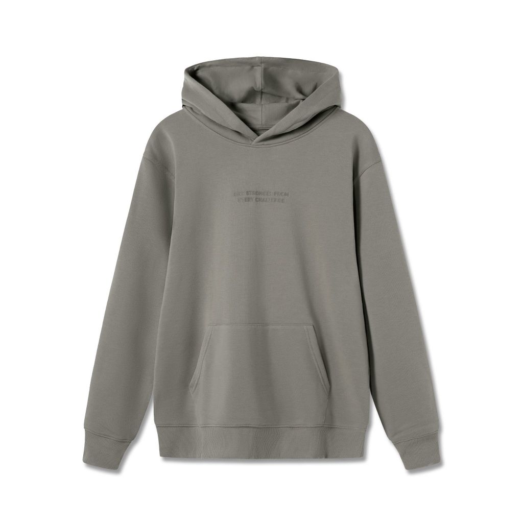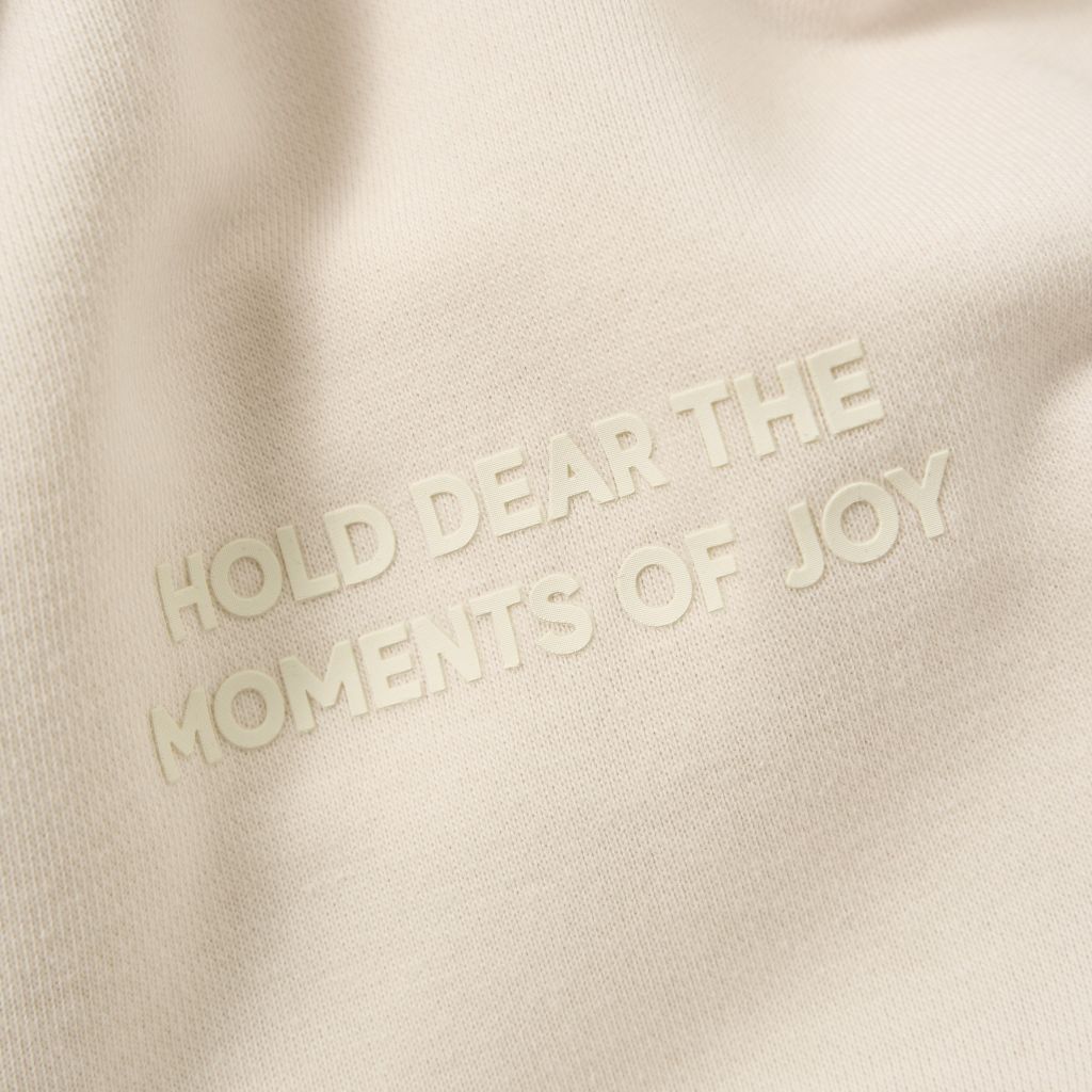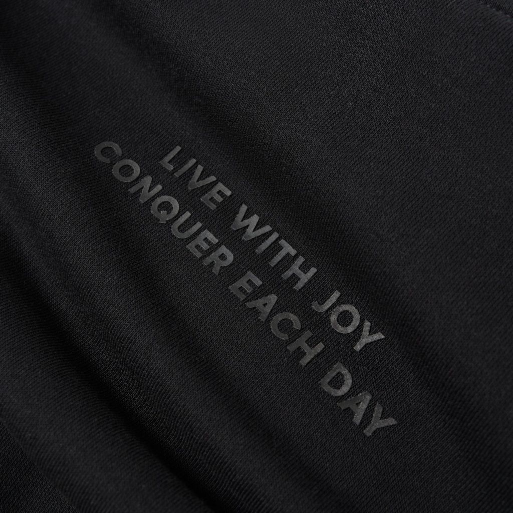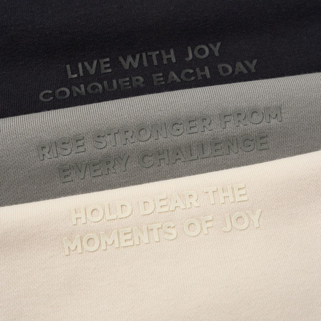 Điểm nhấn của áo là chi tiết in cao cùng màu vải với các thông điệp mang lại cảm hứng sống tích cực. Kết hợp với ba màu trung tính dễ phối đồ, thiết kế túi thang phía trước giúp giữ ấm tay và tiện dụng.