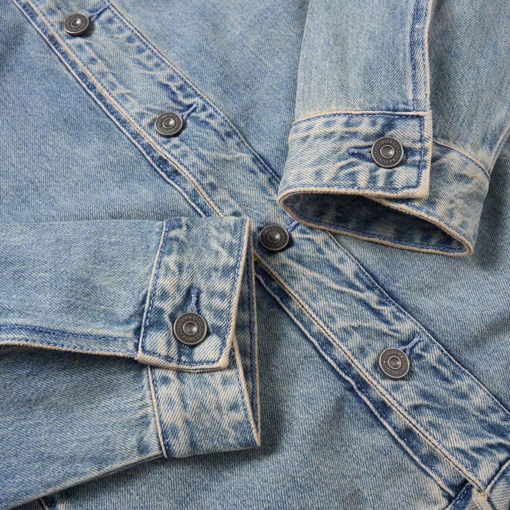 ► CHẤT DENIM – GIỮ FORM TỐTSử dụng denim 2 lớp 8.2oz và 12oz, pha sợi spandex tạo độ co giãn nhẹ. Bề mặt vải chắc tay, không bai dão, giữ được dáng áo ngay cả khi vận động nhiều.