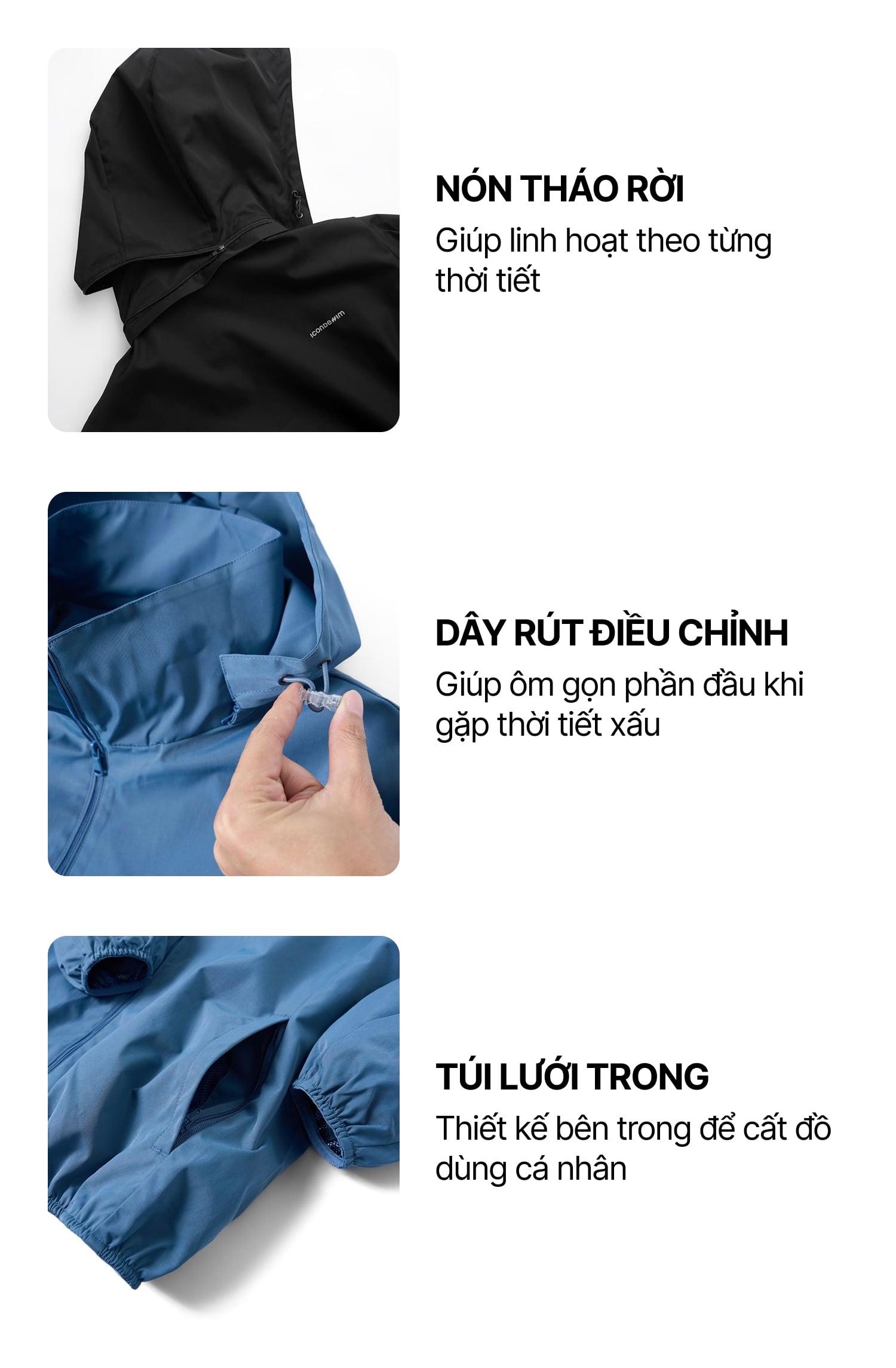 Áo Khoác Nam Lightweight Tech Có Nón Pocketable Form Regular