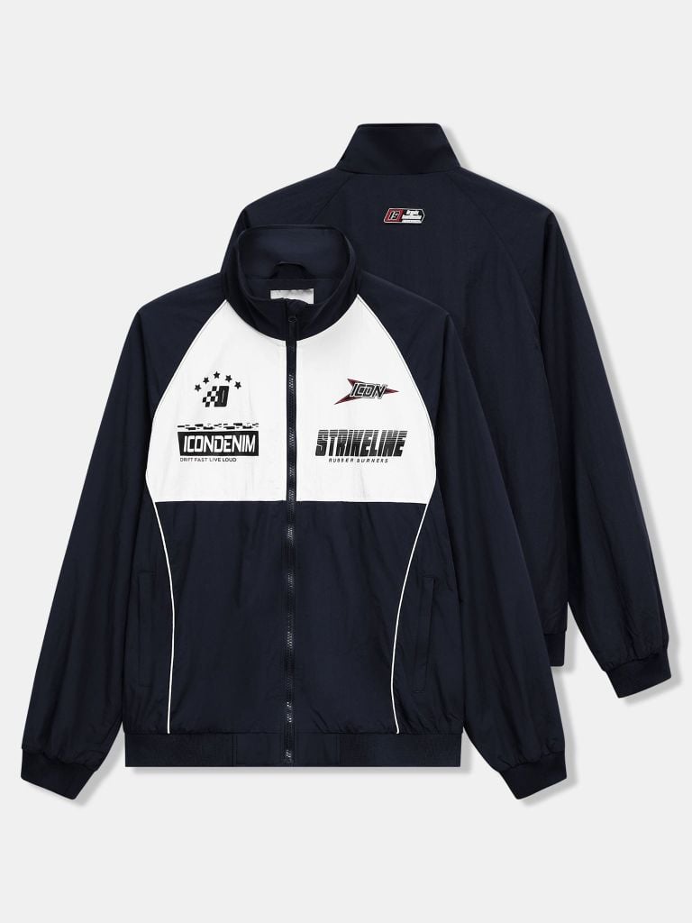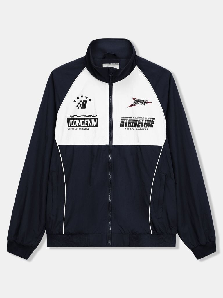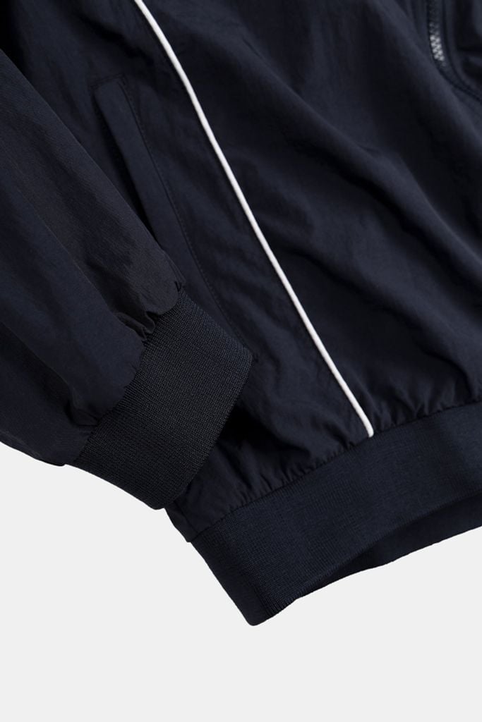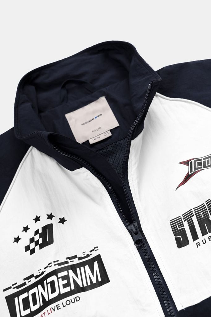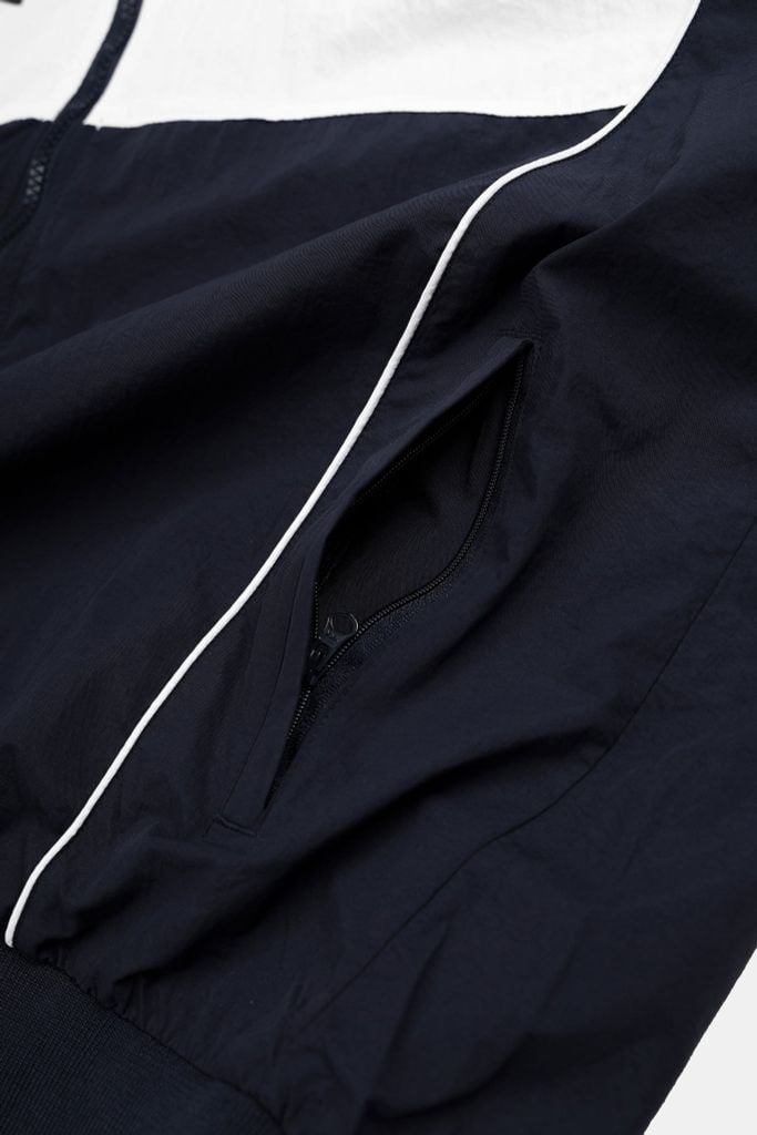 Thiết kế phối mảng màu xanh đen – trắng kem tạo hiệu ứng thị giác rõ ràng, mang tinh thần thể thao hiện đại. Áo dùng cổ trụ kết hợp khóa kéo tiệp màu vải chính, chiều dài khóa được tính từ lai đến hết trụ cổ để dễ điều chỉnh khi mặc. Logo và details dệt cao su phát triển ở thân trước và thân sau giúp tổng thể có điểm nhấn nhưng vẫn giữ sự gọn gàng.