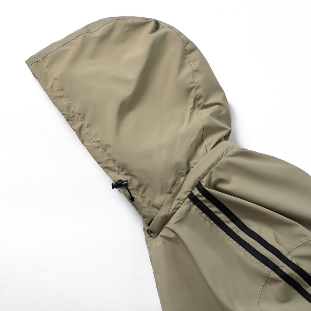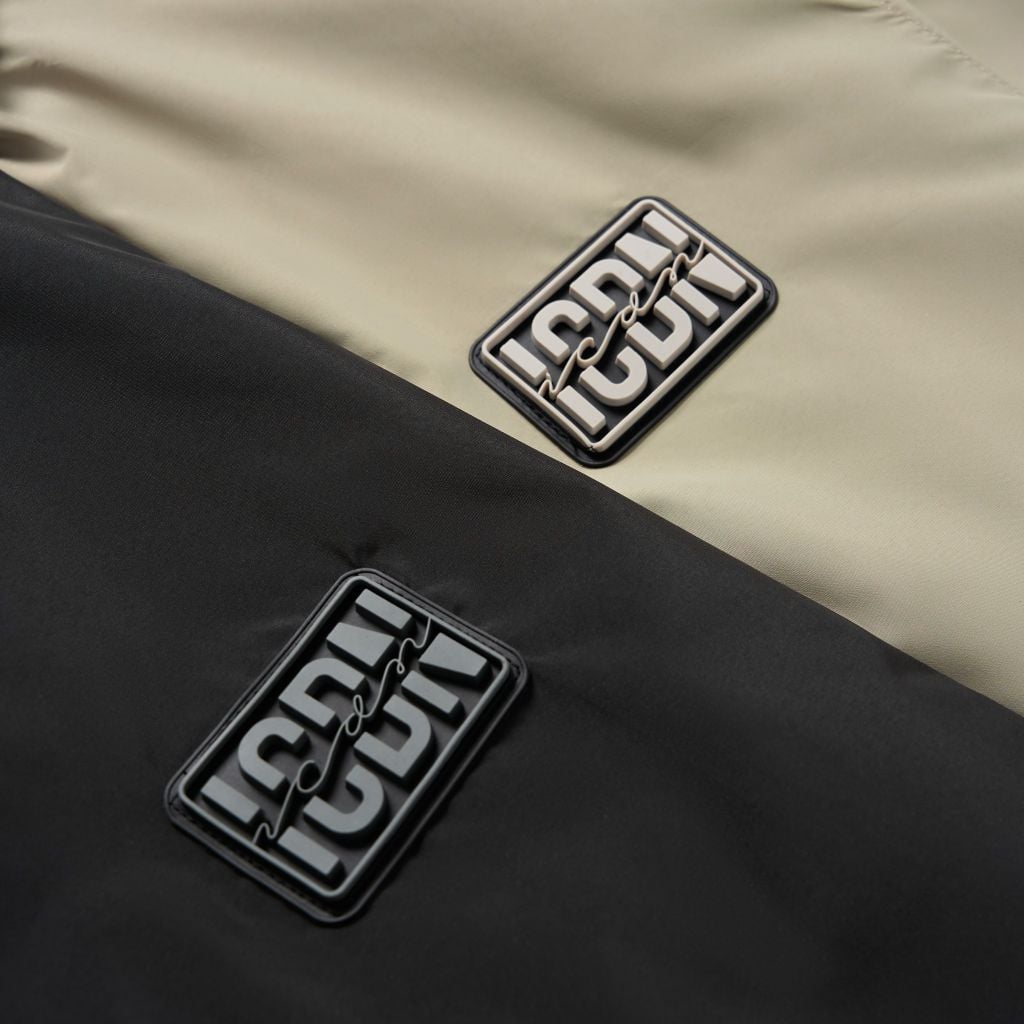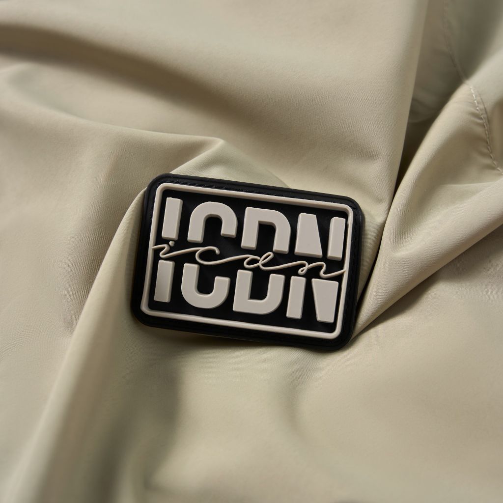Hai sọc đen chạy dọc tay áo tạo điểm nhấn thể thao mạnh mẽ nhưng vẫn giữ sự thanh lịch. Logo ICDN được in rubber đen nổi bật trên nền vải, khẳng định cá tính thương hiệu. Các chi tiết như túi zip chéo, nón dây rút và khóa kéo đều được hoàn thiện chỉn chu, đảm bảo vừa thẩm mỹ vừa tiện dụng.