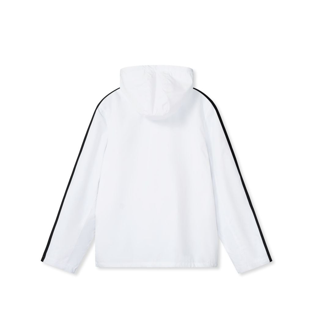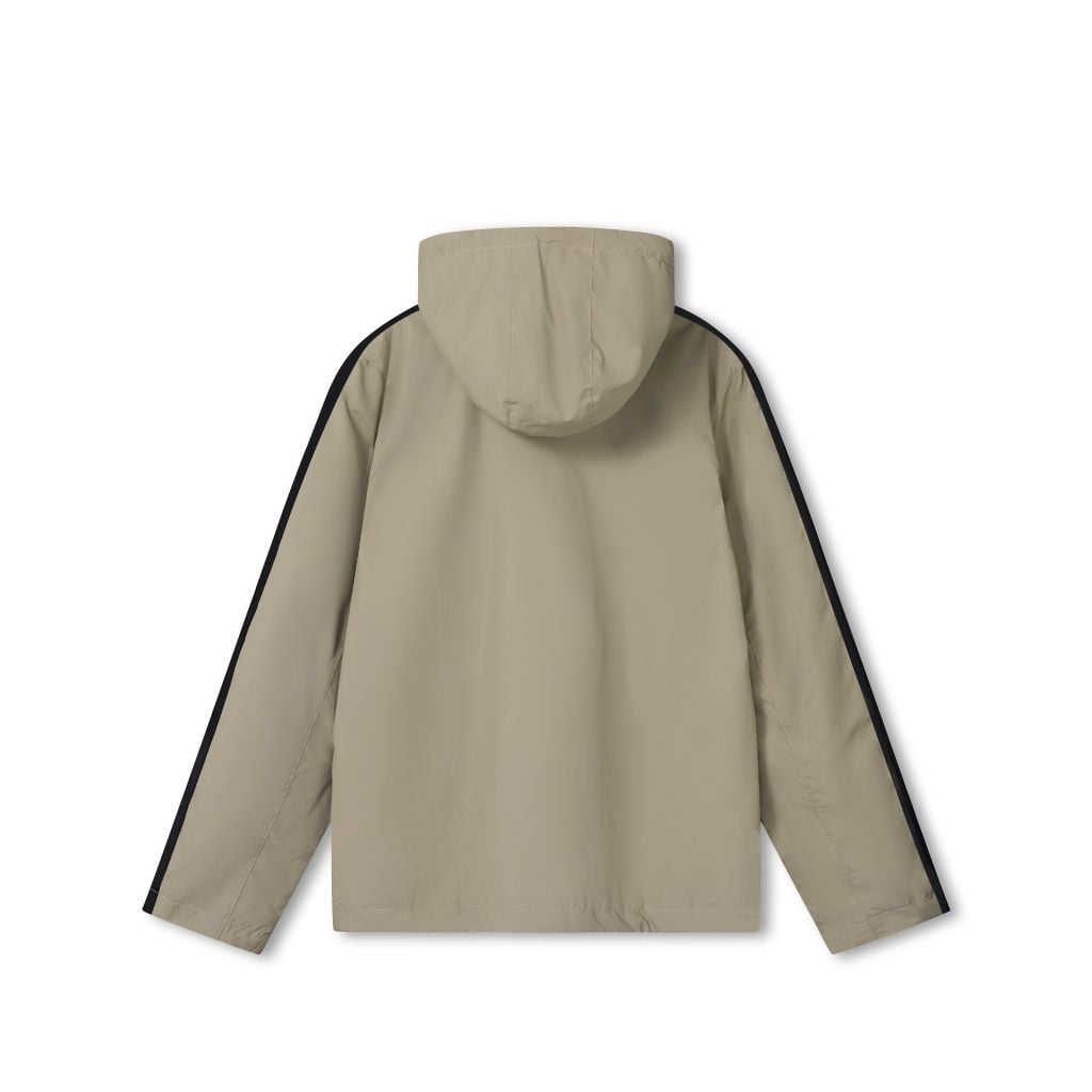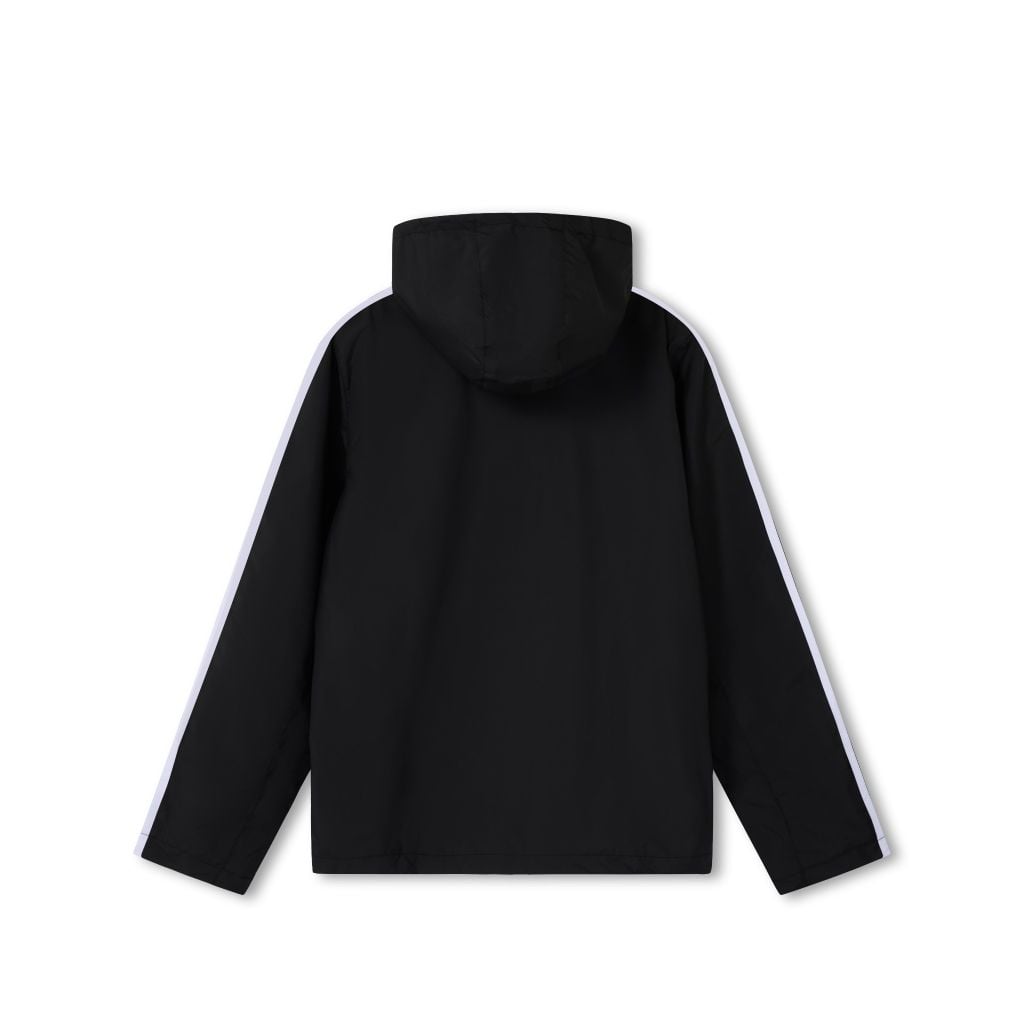 Hai sọc đen chạy dọc tay áo tạo điểm nhấn thể thao mạnh mẽ nhưng vẫn giữ sự thanh lịch. Logo ICDN được in rubber đen nổi bật trên nền vải, khẳng định cá tính thương hiệu. Các chi tiết như túi zip chéo, nón dây rút và khóa kéo đều được hoàn thiện chỉn chu, đảm bảo vừa thẩm mỹ vừa tiện dụng.