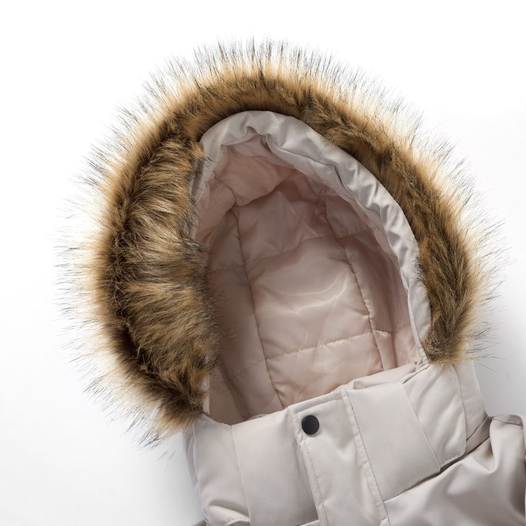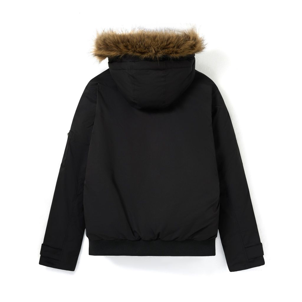 Áo khoác lộn 2 lớp với lớp chần bông bên trong và nón liền thân, tối ưu giữ ấm. Phối lông trên nón tạo điểm nhấn thời trang và tăng độ ấm. Thiết kế trang bị nhiều túi khóa kéo tiện lợi, giúp bảo quản vật dụng cá nhân dễ dàng.