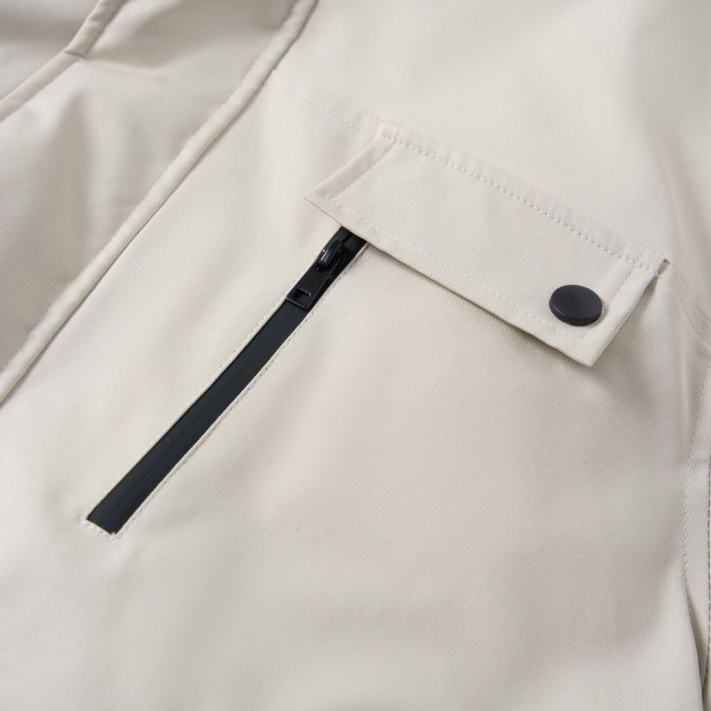 Áo khoác vải gió chống gió, chống thấm nước, bền bỉ và giữ form tốt sau nhiều lần sử dụng. Lớp lót chần bông bên trong mang lại sự ấm áp và thoải mái trong mùa đông.