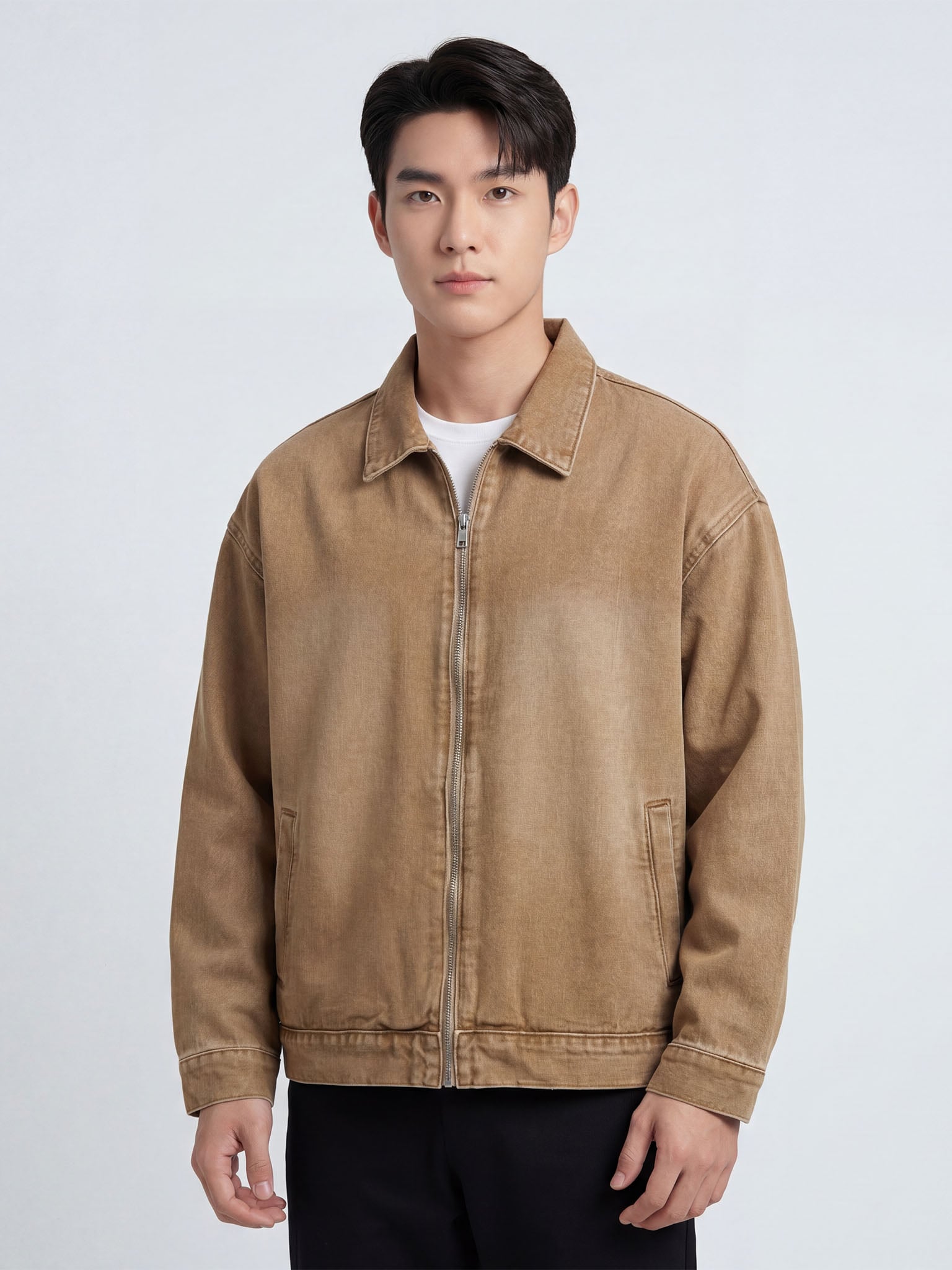 Sản phẩm sử dụng denim wash với độ dày vừa phải, đủ để giữ cấu trúc áo ổn định khi mặc nhưng vẫn không tạo cảm giác nặng nề.