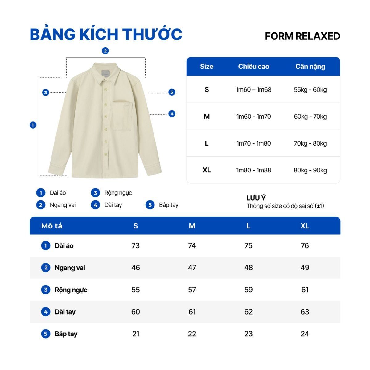 Form relaxed thoải mái, không ôm sát cơ thể. Dễ phối đồ khi cần tạo layering cá tính hoặc đơn giản mặc như một item outerwear vào buổi tối, đi làm hoặc dạo phố.