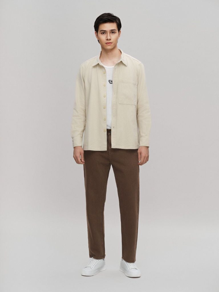 Bề mặt vải có độ cứng vừa phải giúp áo giữ dáng đứng, kết hợp xử lý mềm tay mang lại cảm giác mặc dễ chịu, không gò bó. Phù hợp mặc đơn lẻ hoặc làm lớp ngoài phối cùng áo thun/sơ mi.