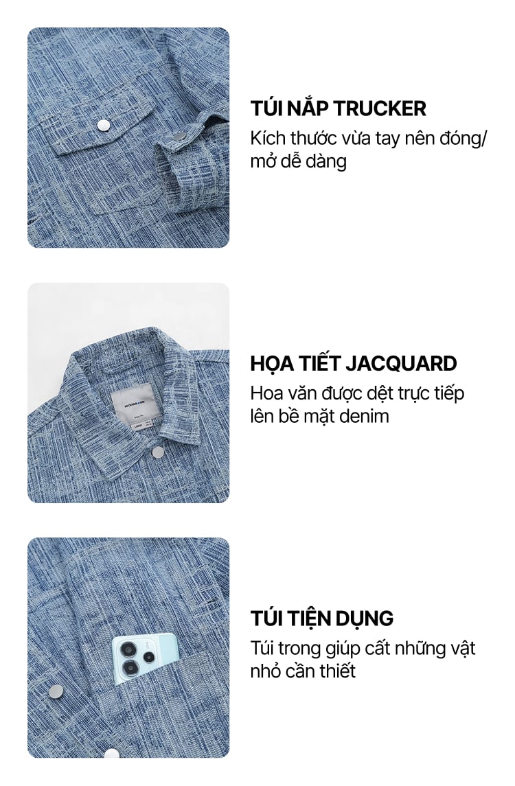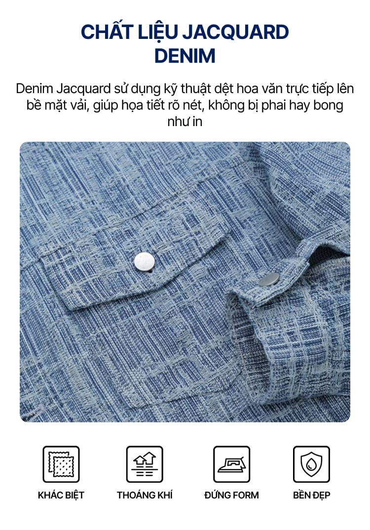Áo Khoác Nam Jacquard Denim Form Loose ƯU ĐÃI ONLINE