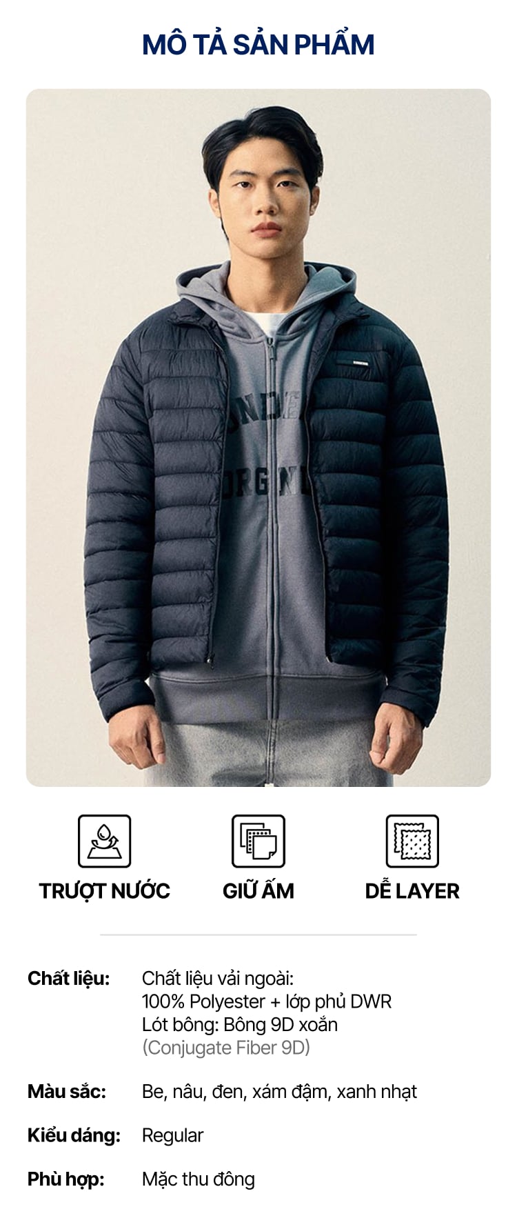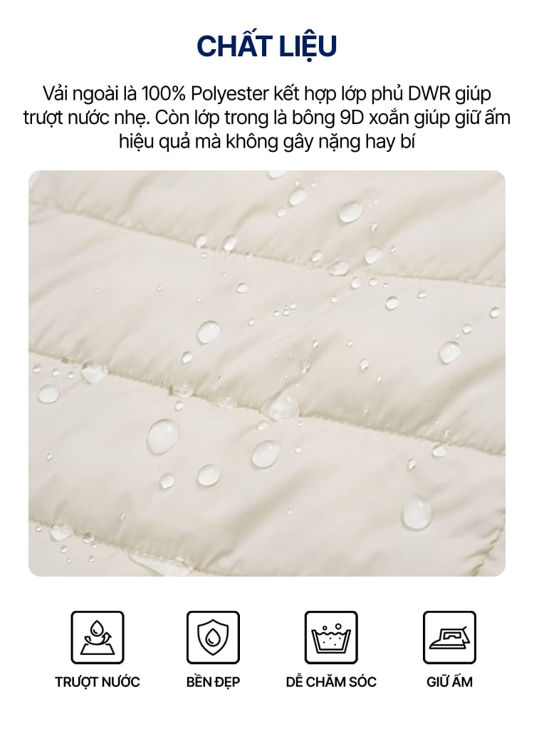 Bông lót đệm trong: Bông 9D xoắn (Conjugated fiber 9D)