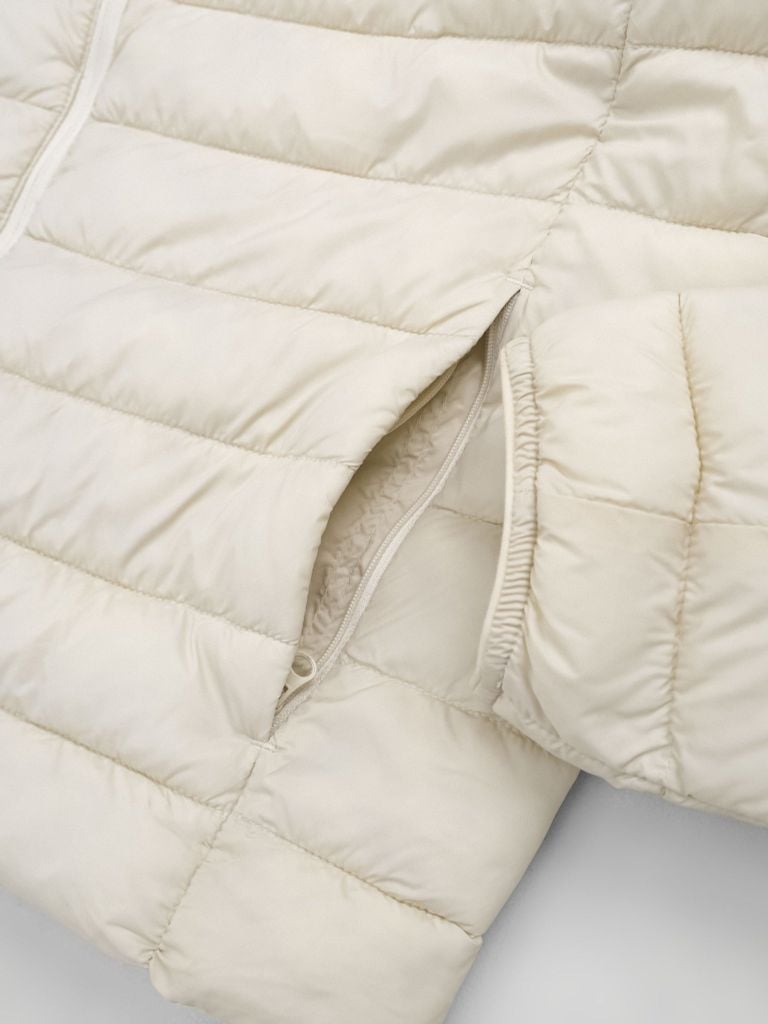 Vải ngoài làm từ 100% Polyester kết hợp lớp phủ DWR giúp hạn chế bám nước nhẹ, giữ bề mặt khô ráo và bền màu hơn khi sử dụng hằng ngày. Lớp bông bên trong sử dụng sợi 9D xoắn (Conjugated Fiber 9D), có độ phồng tự nhiên, đàn hồi tốt và giữ ấm hiệu quả mà không gây nặng hay bí. Cấu trúc sợi xoắn giúp áo nhẹ, thoáng, mặc lâu vẫn dễ chịu – phù hợp thời tiết se lạnh đến lạnh nhẹ của mùa đông.