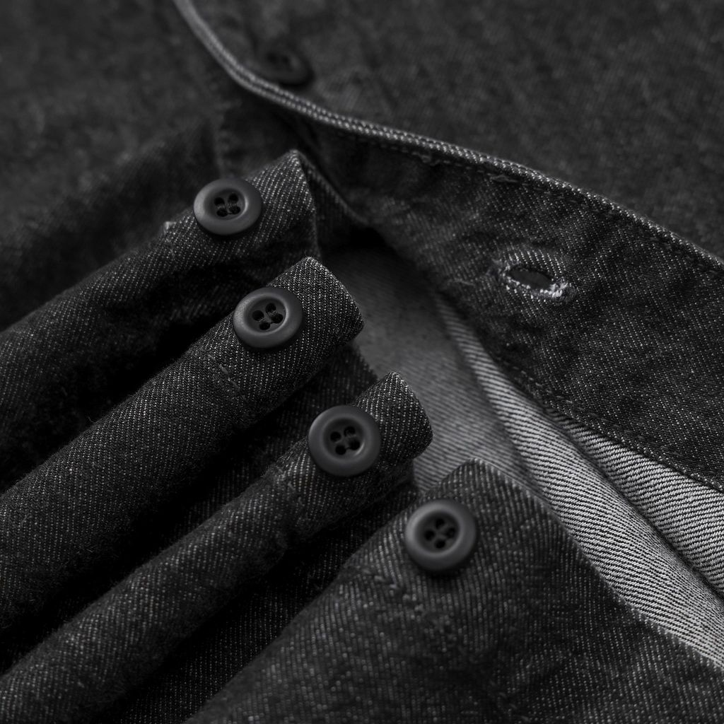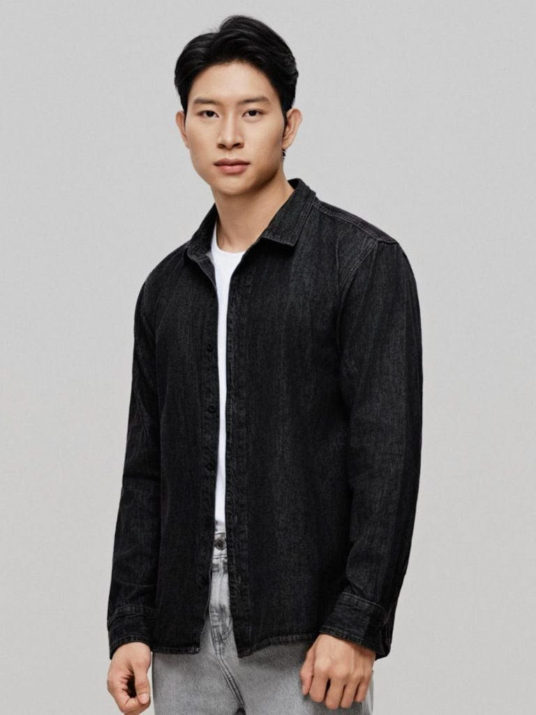 ► THIẾT KẾ TỐI GIẢN – MANG ĐẬM TINH THẦN NAM TÍNHDáng áo sơ mi cổ điển kết hợp chi tiết ráp tay và đường may sắc sảo, thể hiện vẻ ngoài mạnh mẽ, chỉn chu. Lớp denim wash xám đậm tạo chiều sâu, phù hợp phong cách tối giản hiện đại.