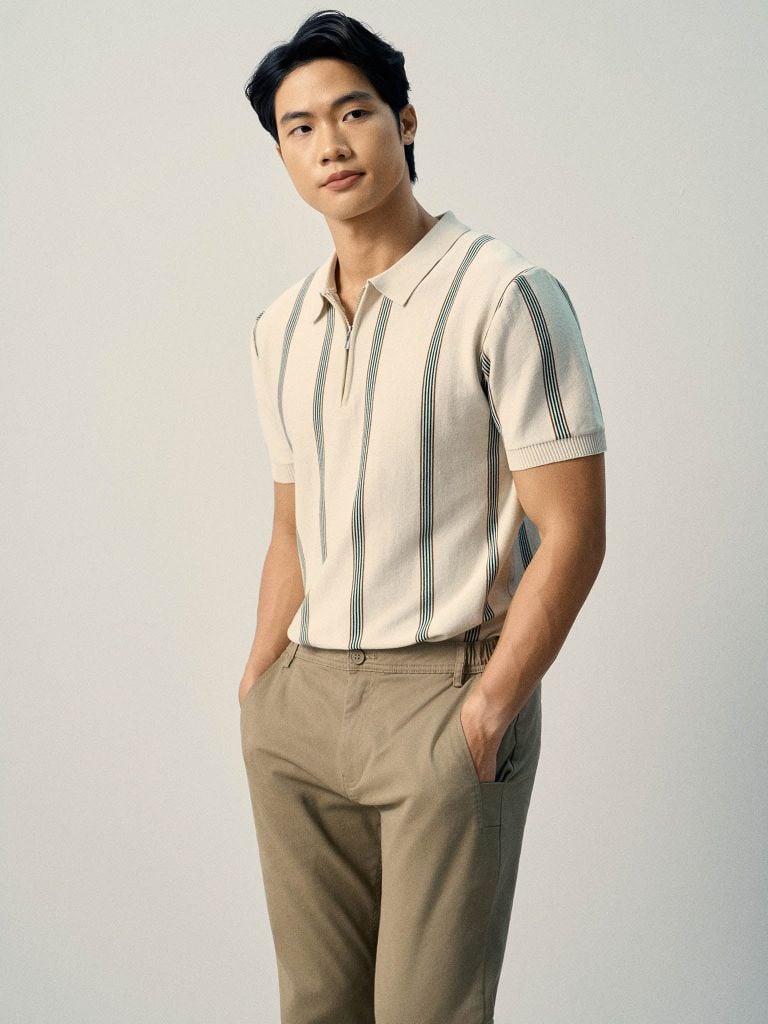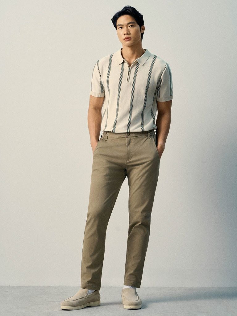 Form regular được căn chỉnh vừa vặn, không ôm sát nhưng vẫn giữ dáng gọn, che khuyết điểm tốt. Tông be trung tính dễ phối với quần jeans, kaki hoặc quần tây, phù hợp cả đi làm lẫn đi chơi.