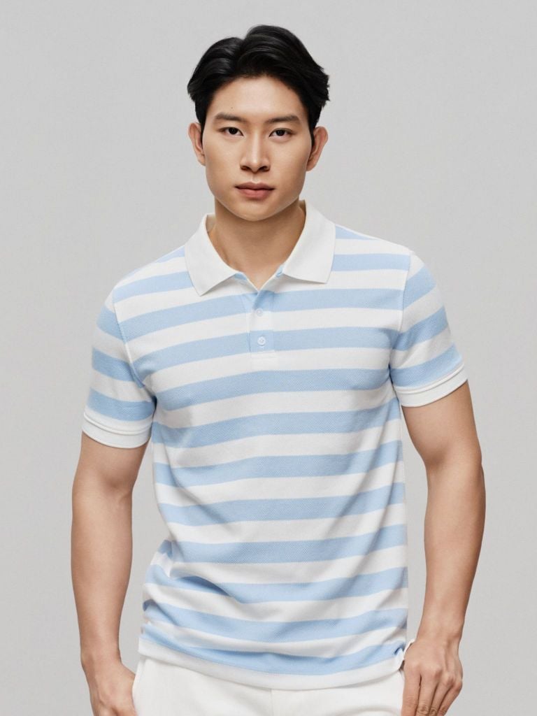 ► VẢI THUN SỌC MÁT MẺ – GỢI CẢM GIÁC SẠCH SẼ, LỊCH THIỆPChất vải được dệt sọc xanh nhạt trên nền trắng, tạo hiệu ứng thị giác gọn gàng và tinh tế. Mặt vải mịn nhẹ, thoáng mát, lý tưởng cho mùa nắng.