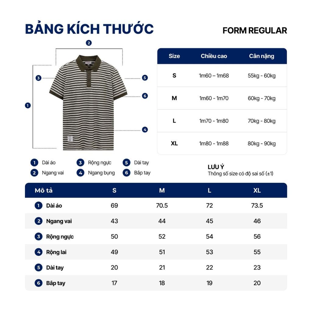 ► FORM REGULAR – GỌN GÀNG & DỄ PHỐIKiểu dáng regular vừa vặn, thoải mái và dễ dàng phối với quần jeans, kaki hay short. Cổ bẻ phối nút tạo điểm nhấn chỉn chu, phù hợp cả đi làm lẫn đi chơi.
