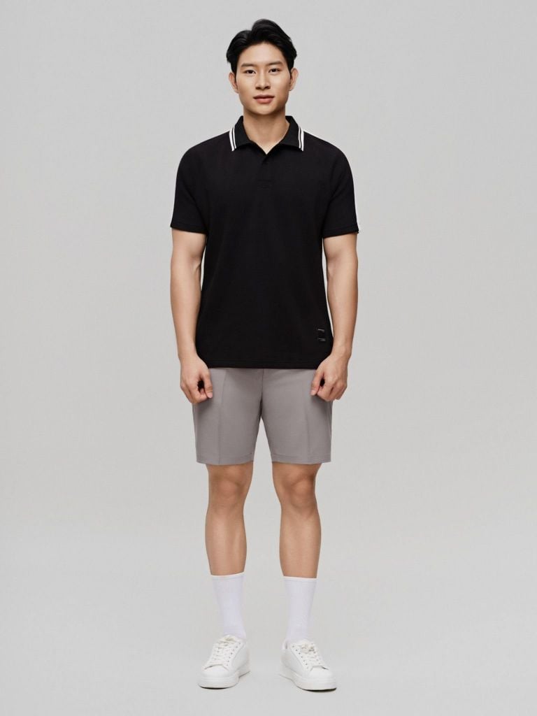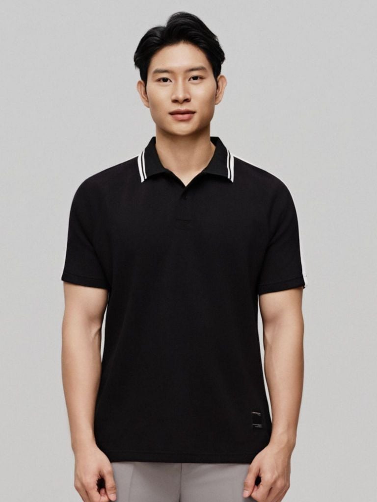 Phối viền sọc bản nhỏ ở cổ và tay áo tạo điểm nhấn mạnh mẽ, phù hợp với phong cách trẻ trung và năng động.