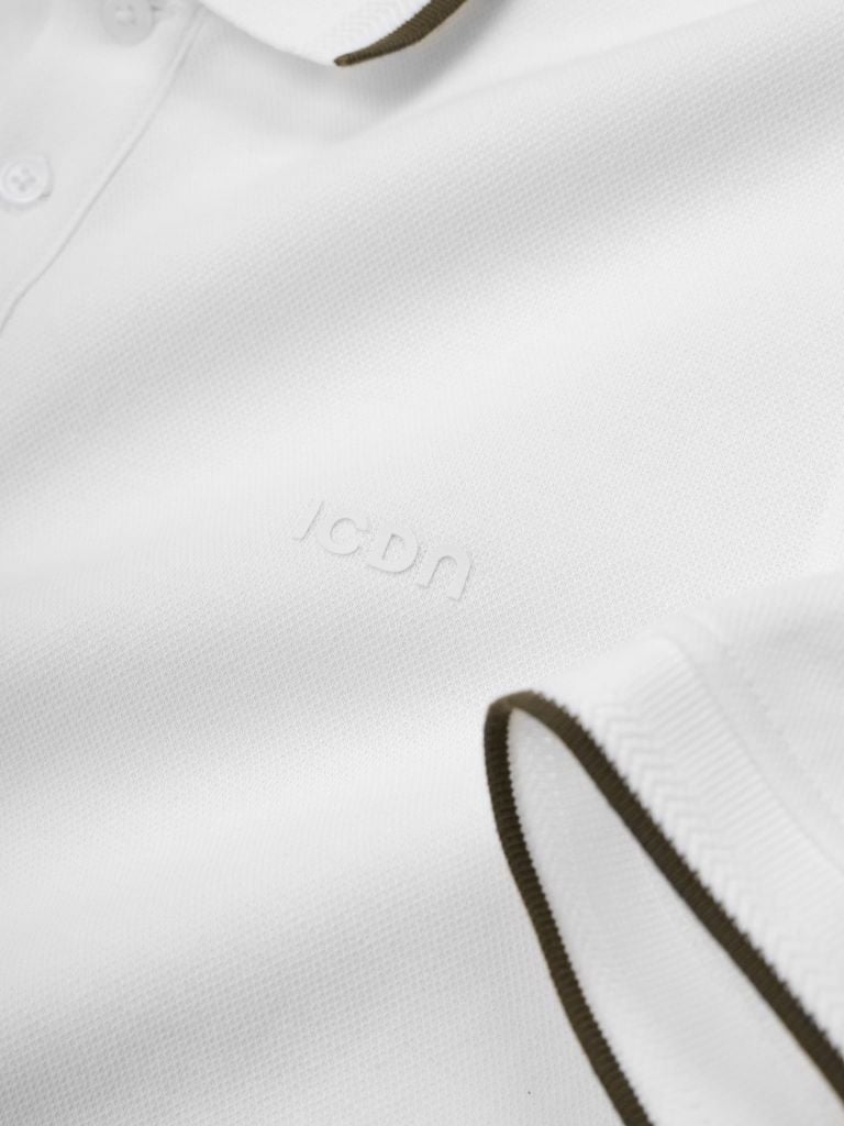 Bo cổ sử dụng vải Rib, bo dệt sọc đường bo đều và ổn định. Trụ nẹp 3 nút gài và bo tay bản 2cm, dệt xương cá, đảm bảo độ ôm nhẹ và không cấn khi vận động. Chi tiết in cao logo ICDN đặt ngực trái, tạo điểm nhấn vừa đủ.