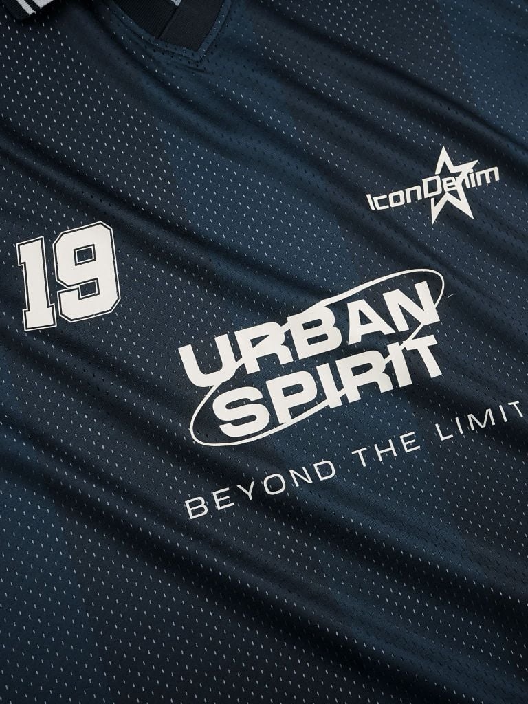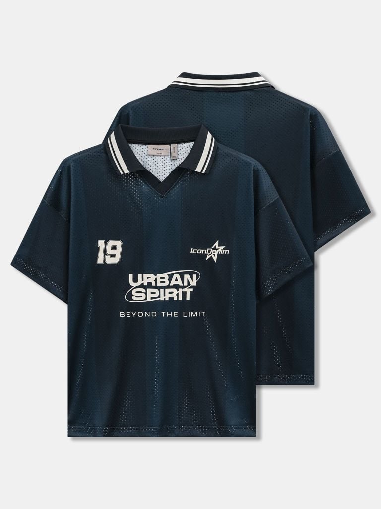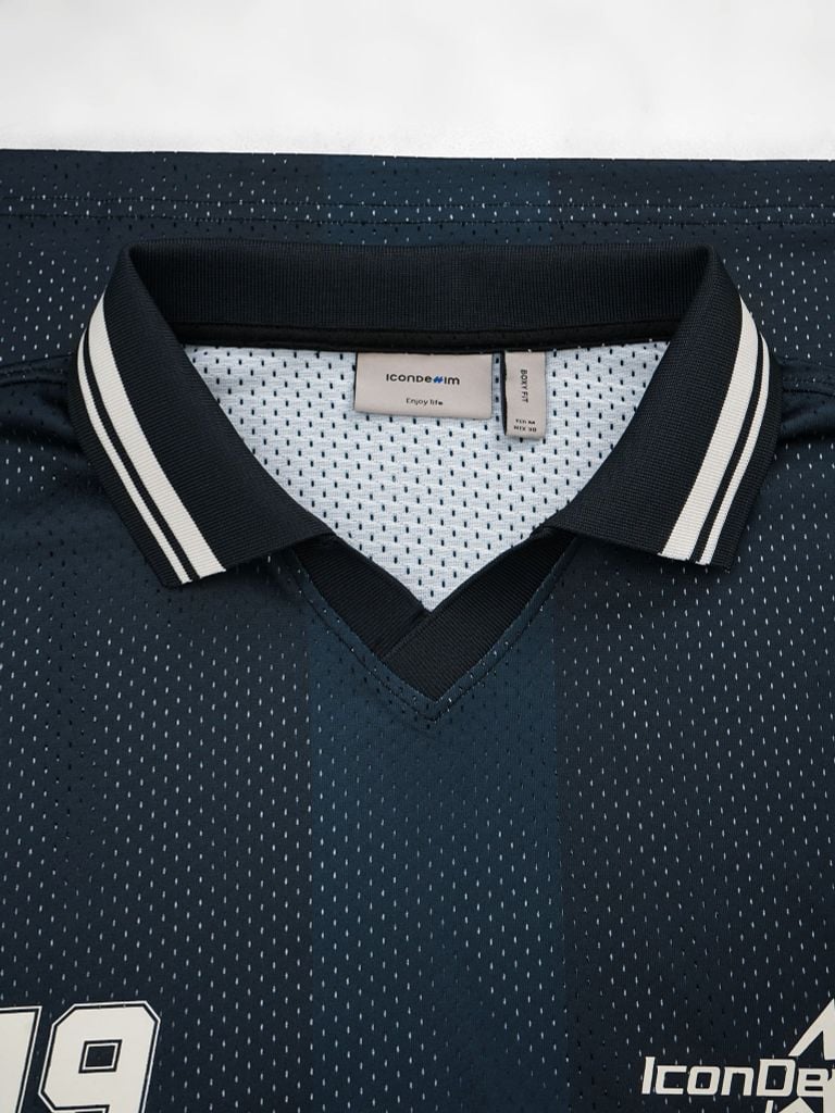 Thiết kế polo cổ tim kết hợp lá cổ bẻ dệt sọc tạo diện mạo mới lạ, trẻ trung và có cá tính. Thân áo và tay áo được xử lý hiệu ứng sọc chuyển nhiệt tone đậm, đi cùng chi tiết in dẻo phía trước giúp mặt áo nổi bật.