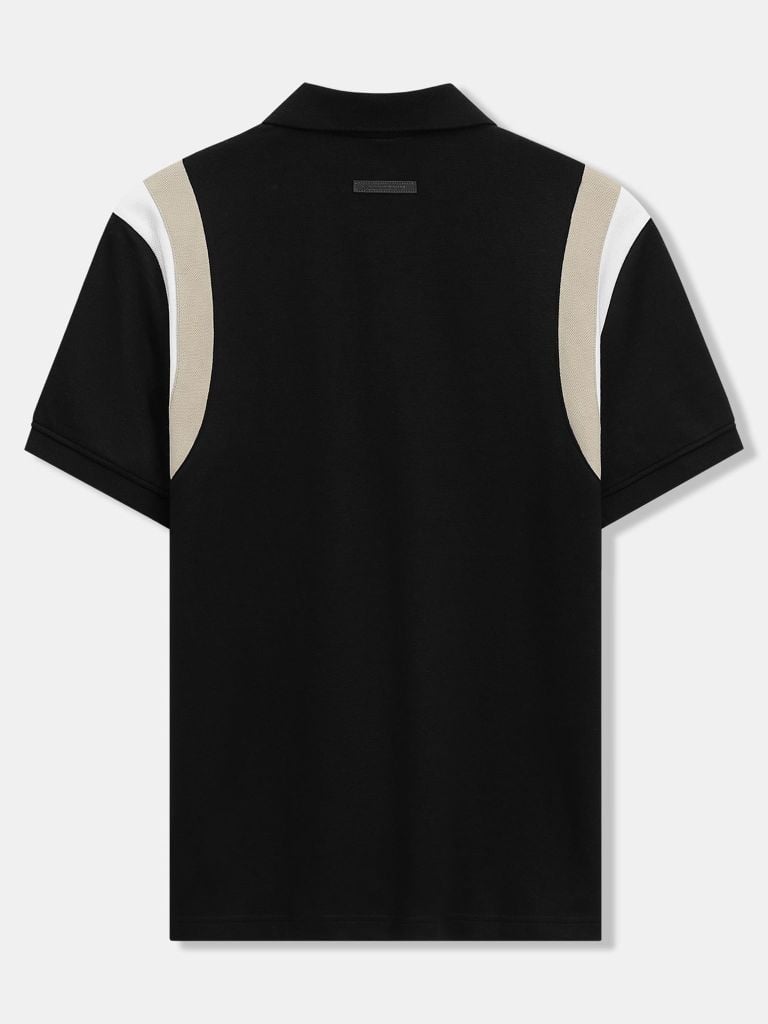 Bo tay dệt sọc mịn, dùng vải rib tiệp màu vải chính để đồng bộ tổng thể. Điểm nhấn nằm ở chi tiết rá phối vòng nách thân trước và thân sau, kết hợp thêu tiệp màu theo mảng phối, tạo cảm giác thể thao nhưng vẫn gọn gàng, dễ mặc.