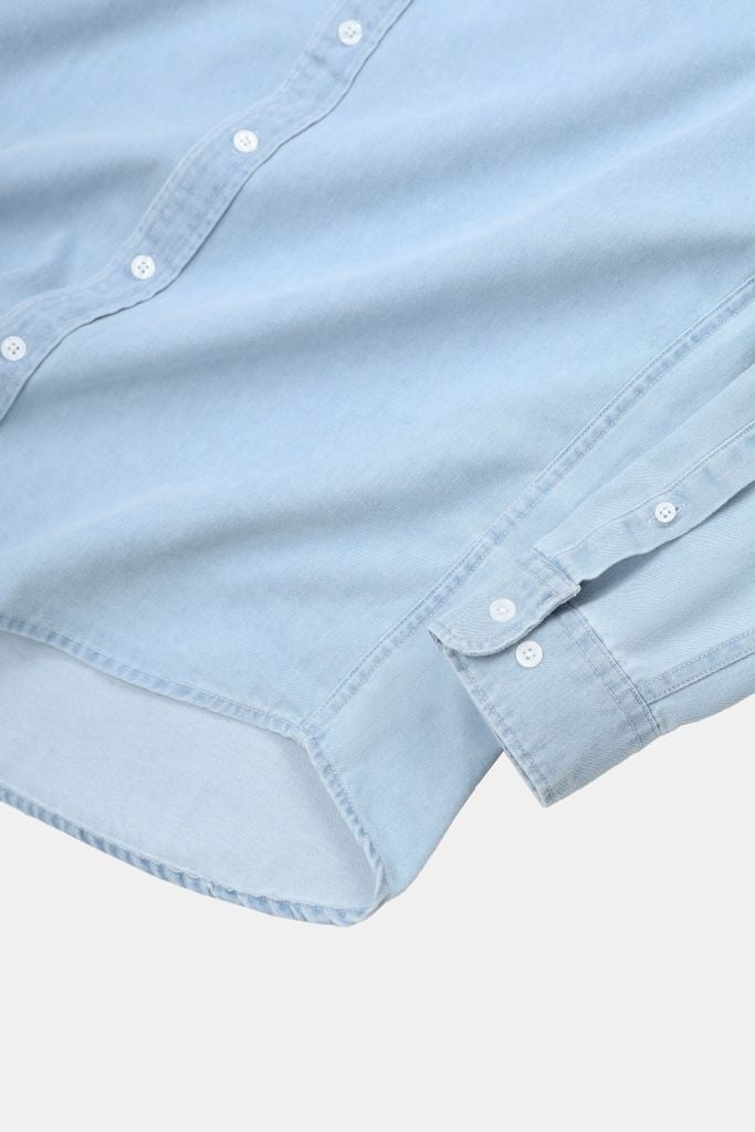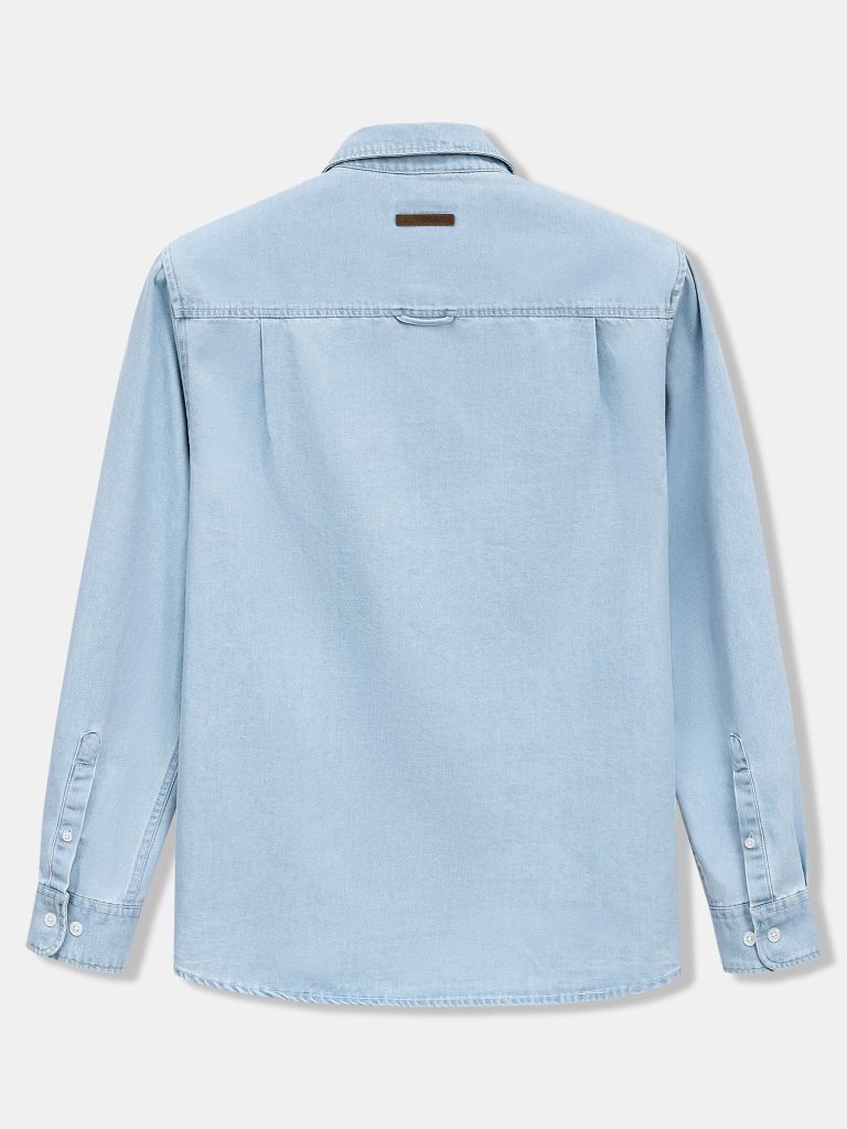 Sử dụng vải jean denim có nền cotton chủ đạo, bề mặt mềm vừa, độ rủ tự nhiên giúp áo mặc thoải mái nhưng vẫn giữ được phom dáng. Chất vải ổn định trong quá trình sử dụng, phù hợp mặc hằng ngày, dễ phối trong nhiều ngữ cảnh từ casual đến smart-casual.