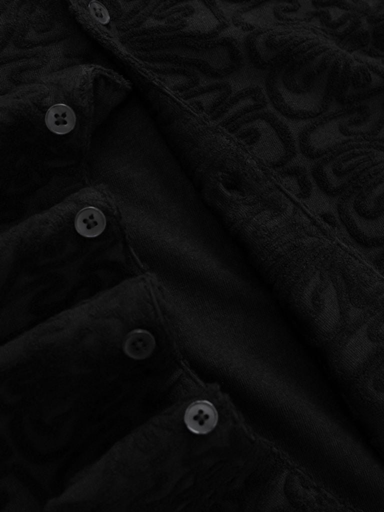 ► THIẾT KẾ CUBAN CỔ ĐIỂN – TINH TẾ & HIỆN ĐẠICổ Cuban mở rộng tạo cảm giác phóng khoáng, tay áo ngắn bản vừa, lai áo dệt sọc gân tinh tế. Các chi tiết khuy, chỉ may và lai áo đều đồng bộ màu vải chính, mang lại tổng thể chỉn chu và dễ mặc.