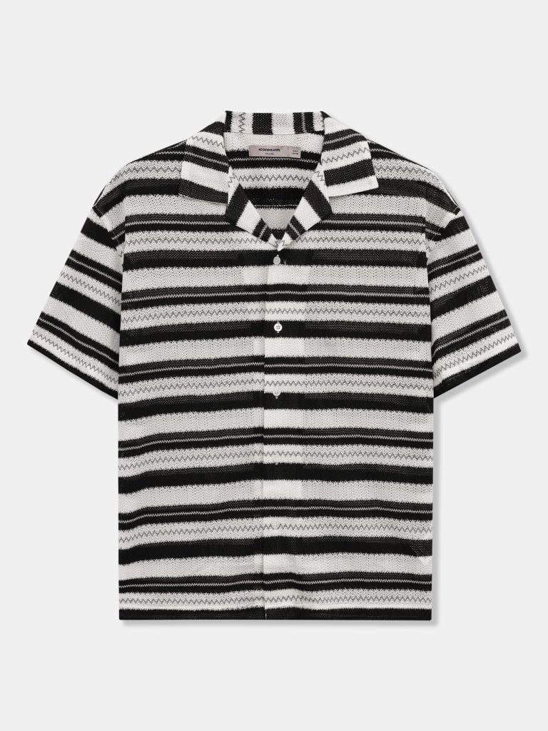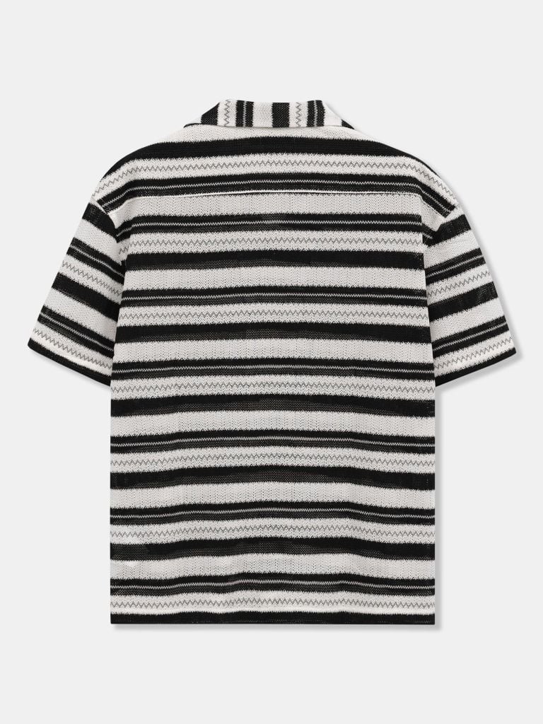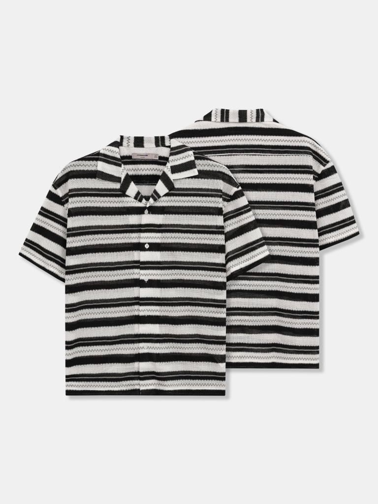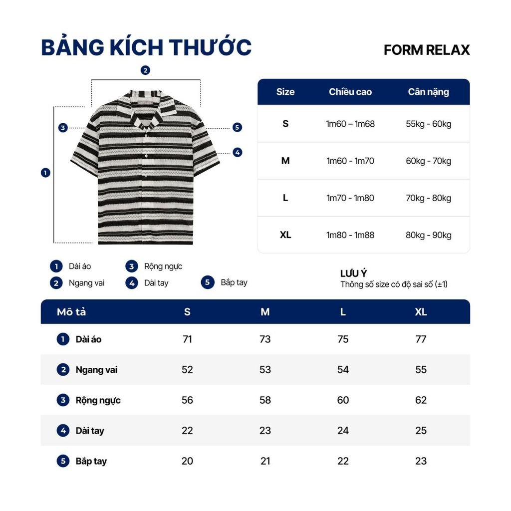 ► THIẾT KẾ CUBAN CỔ ĐIỂN – HIỆN ĐẠI HƠN TRONG PHỐI MÀUCổ Cuban bản vừa, tay ngắn và lai bo cong nhẹ tạo nét phóng khoáng đặc trưng. Họa tiết sọc be đen phối cân đối giúp tổng thể vừa retro vừa hiện đại, dễ dàng ứng dụng từ dạo phố đến cà phê cuối tuần.