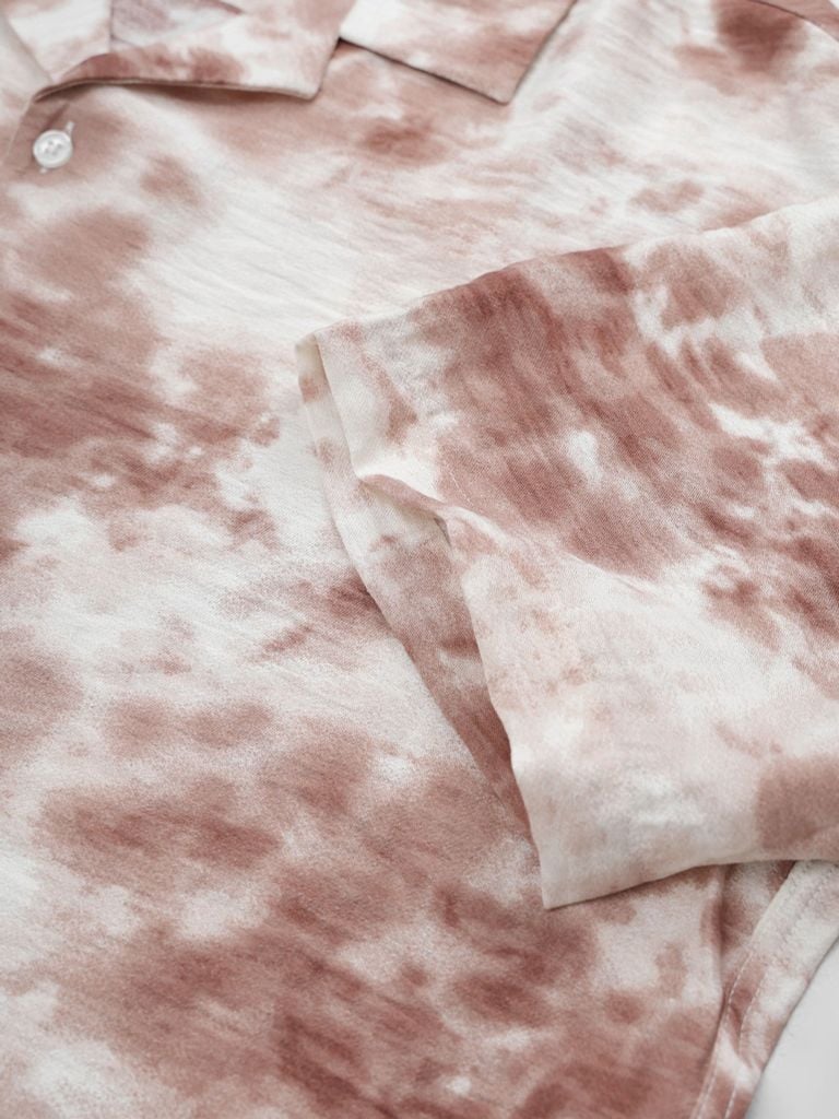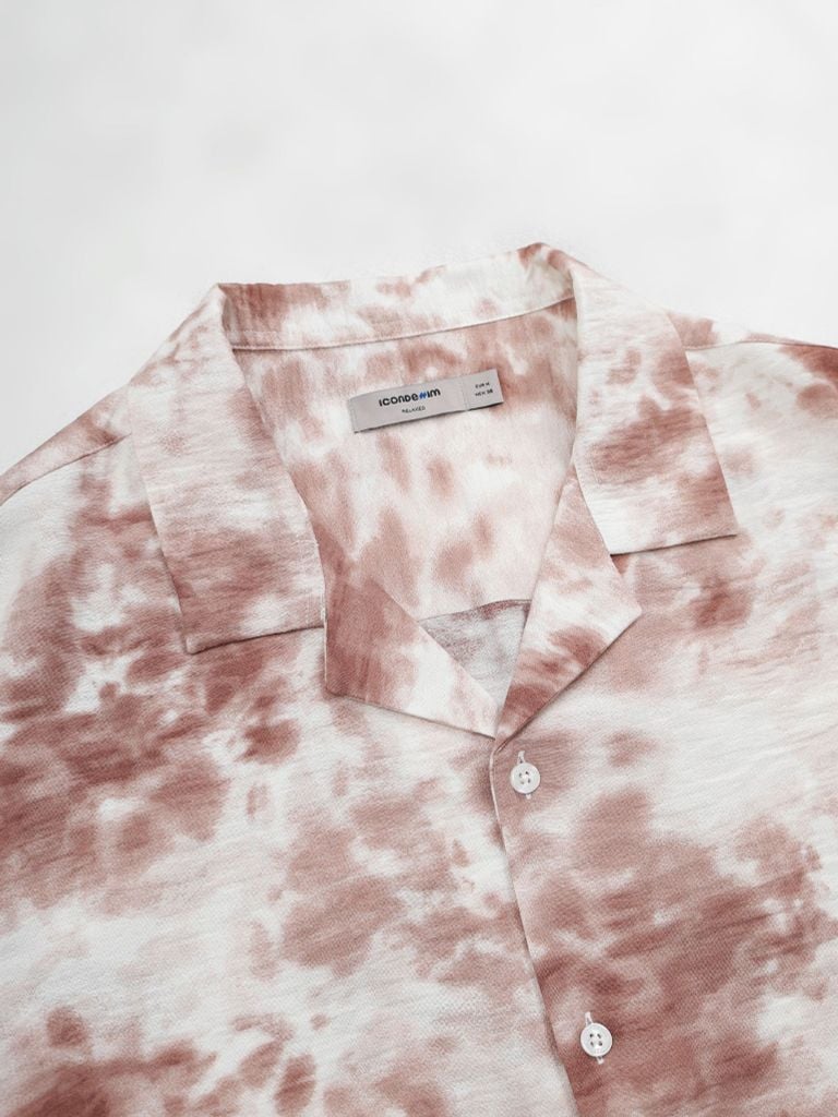 Áo sử dụng cổ Cuban cơ bản, không có đường diễu nổi ở lá cổ để giữ vẻ tối giản và sạch sẽ. Phần thân trước là nẹp liền, đóng bằng nút tròn cùng tông màu, tạo tổng thể liền mạch.