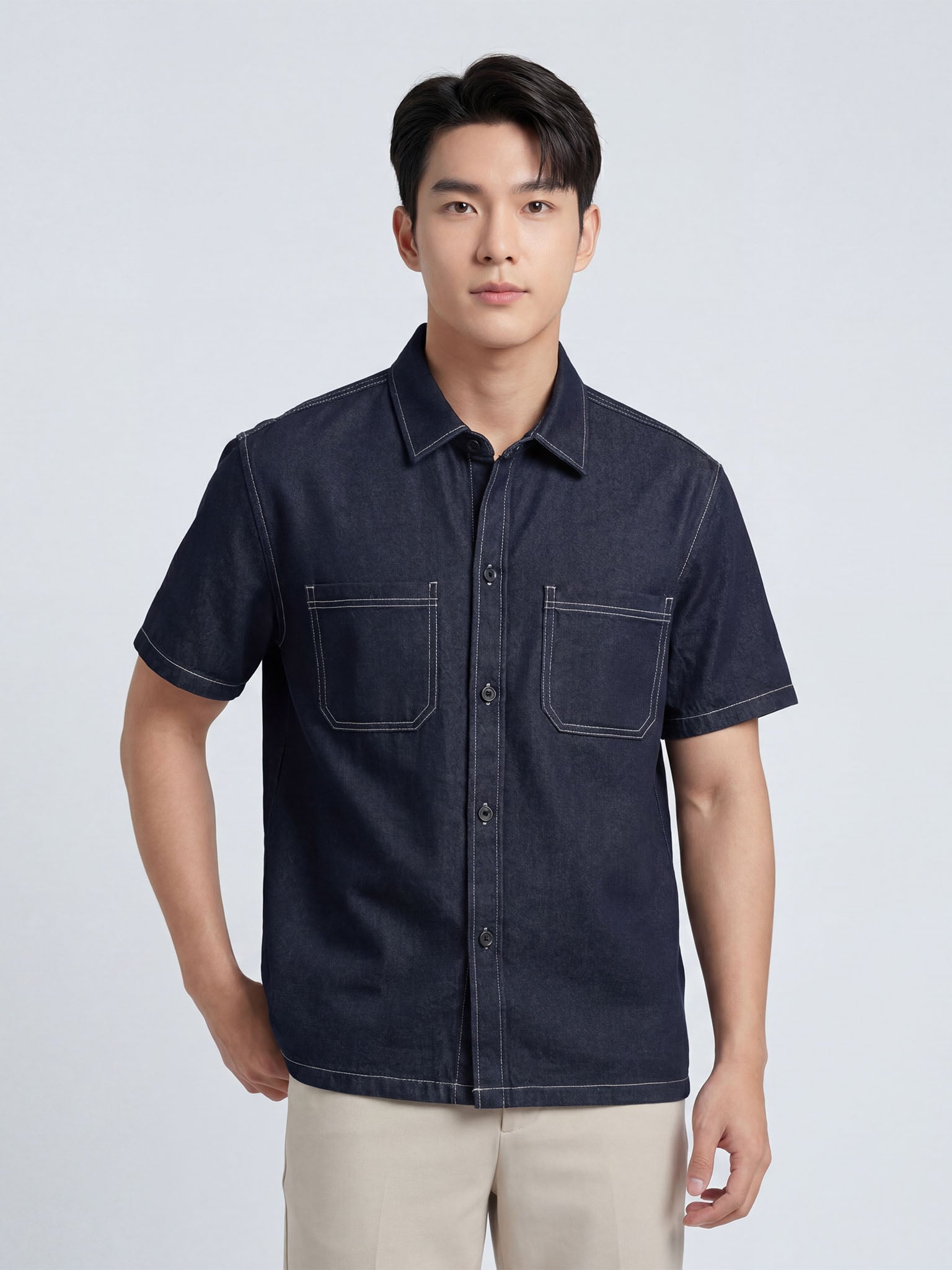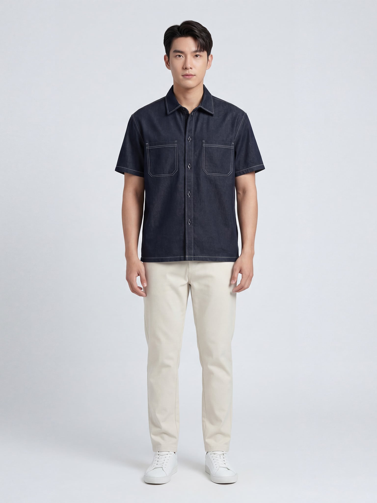 Vải denim với thành phần Cotton – Poly tỷ lệ 60/40, giúp bề mặt vải đứng form nhưng vẫn đủ mềm khi mặc.