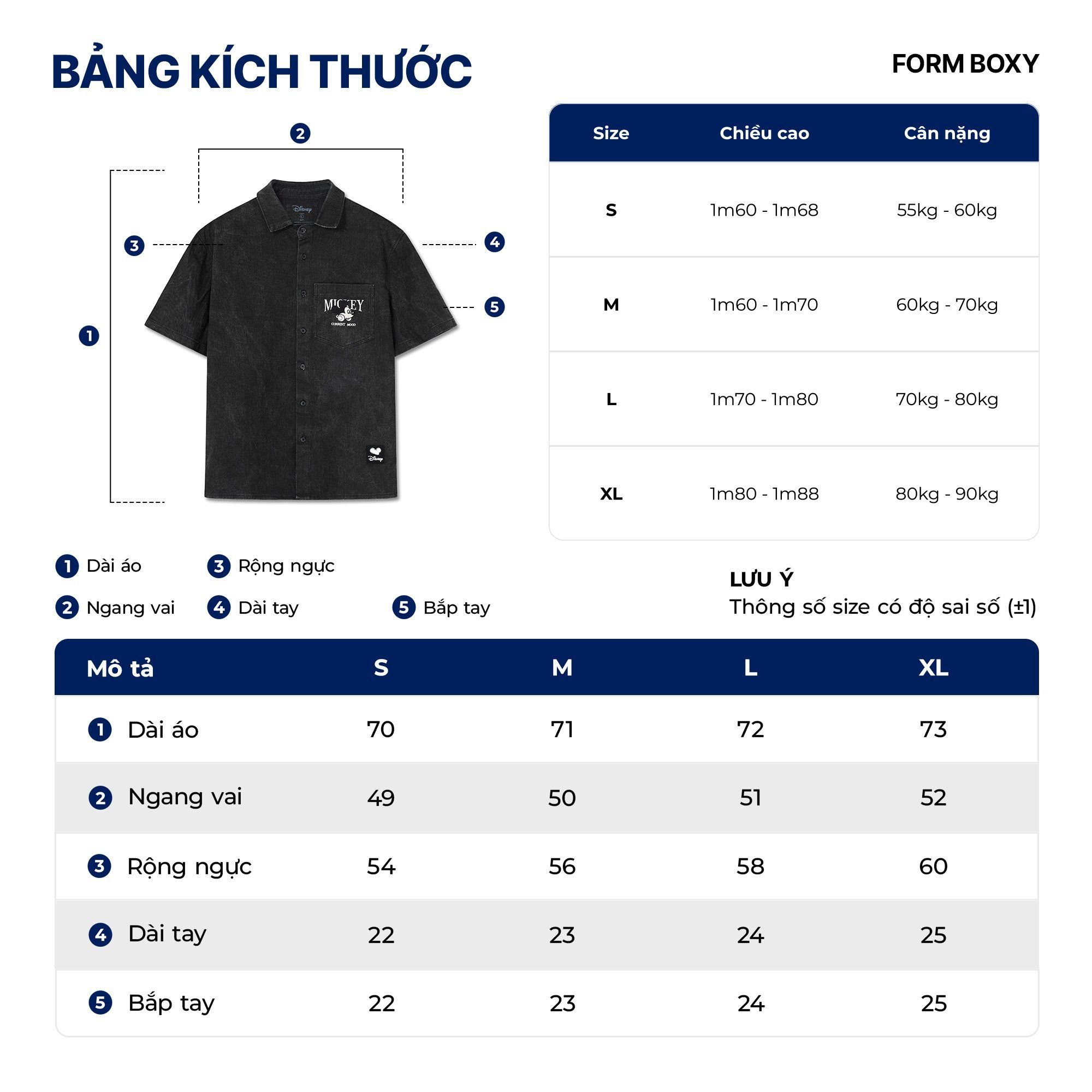 Áo Sơ Mi Nam Kaki Tay Ngắn Disney Grey Beat Form Boxy KHUYẾN MÃI - ƯU ĐÃI