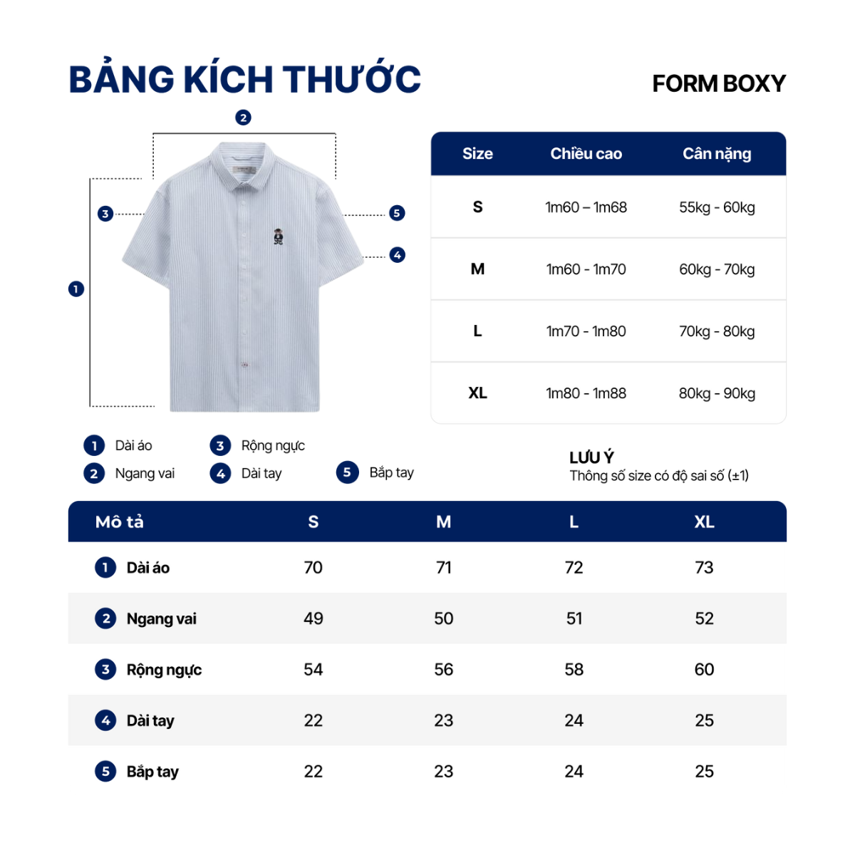 Thiết kế form Boxy rộng rãi, kết hợp tay ngắn hiện đại và thân sau rã đô có xếp ly, mang đến vẻ ngoài phóng khoáng, năng động nhưng vẫn giữ được nét lịch sự, chỉn chu. Nẹp rời và lai sole tinh tế tạo điểm nhấn độc đáo, giúp chiếc áo phù hợp với nhiều dáng người và xu hướng thời trang.