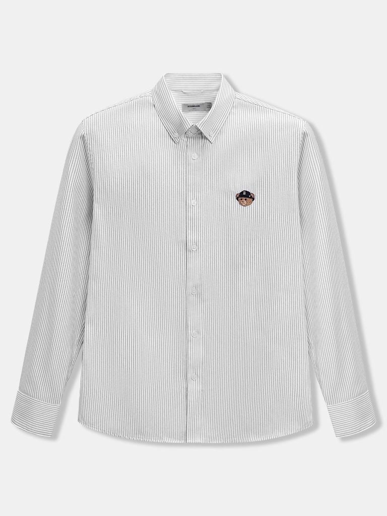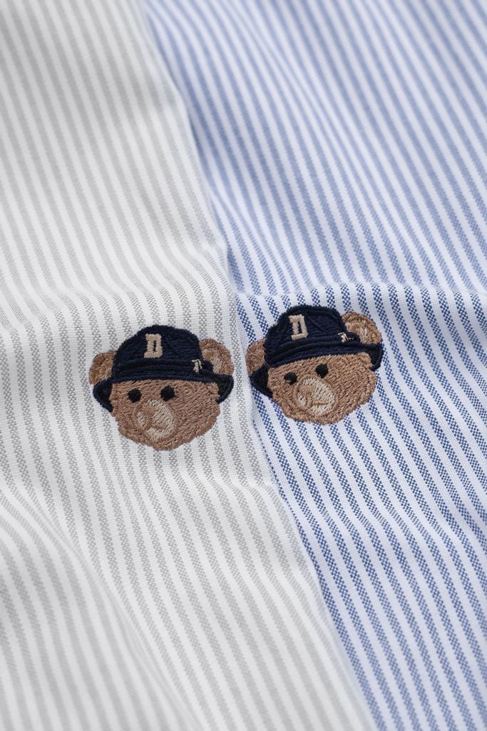 Điểm nhấn chính là logo gấu Rogue Bear được thêu nổi ở ngực trái, kích thước nhỏ gọn nhưng đủ tạo cá tính khi nhìn gần. Phần cổ bẻ cứng cáp, có nút gài hai bên giữ form cổ luôn gọn, không bị bẹp khi mặc cả ngày.