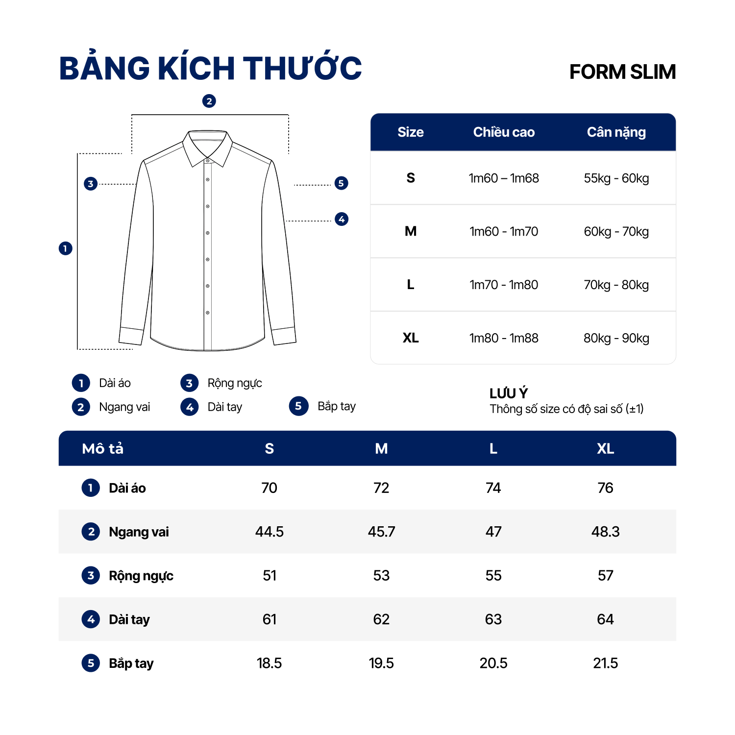 Form Slim được canh để ôm nhẹ theo thân nhưng vẫn chừa đủ độ thoải mái ở vai và ngực, giúp cử động vươn tay, lái xe hay làm việc cả ngày không khó chịu. Độ dài áo vừa phải, có thể sơ vin khi đi làm hoặc thả ngoài quần khi đi chơi mà vẫn giữ tỷ lệ cơ thể cân đối.