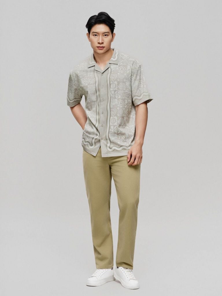 Thiết kế cổ áo cuban cổ điển những vẫn hiện đại, hoạt tiết in độc đáo trên vải. Màu sắc dễ phối và phụ hợp cho nhiều tone da.