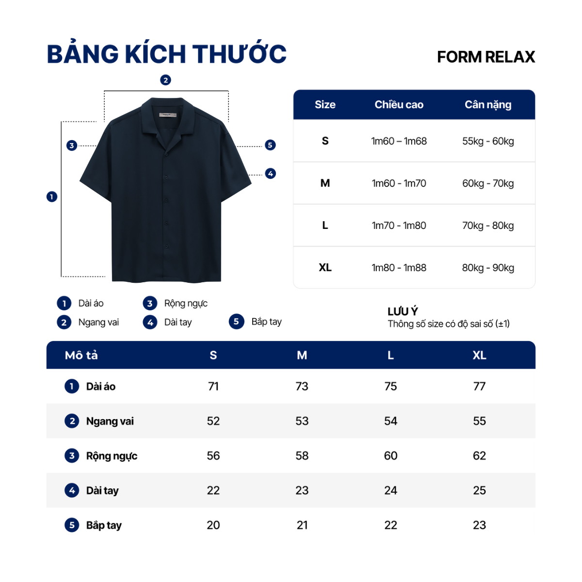 ► FORM RELAXED – CỔ CUBAN KINH ĐIỂNThiết kế cổ Cuban phóng khoáng, tay ngắn, form relaxed thoải mái phù hợp nhiều vóc dáng. Đường may sạch, gọn gàng, lai áo suông dễ phối nhiều kiểu outfit.