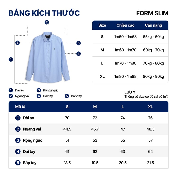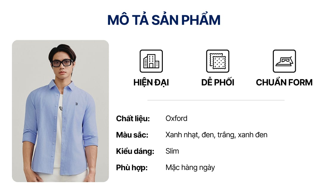 Áo Sơ Mi Oxford Nam Tay Dài Blank Color Embroider Form Slim ƯU ĐÃI ONLINE