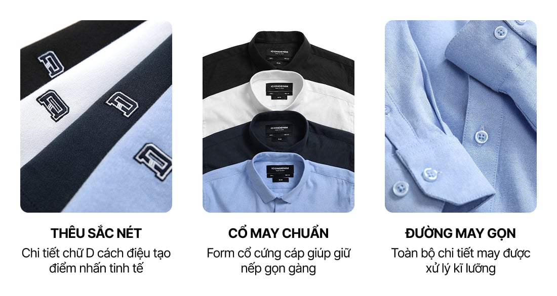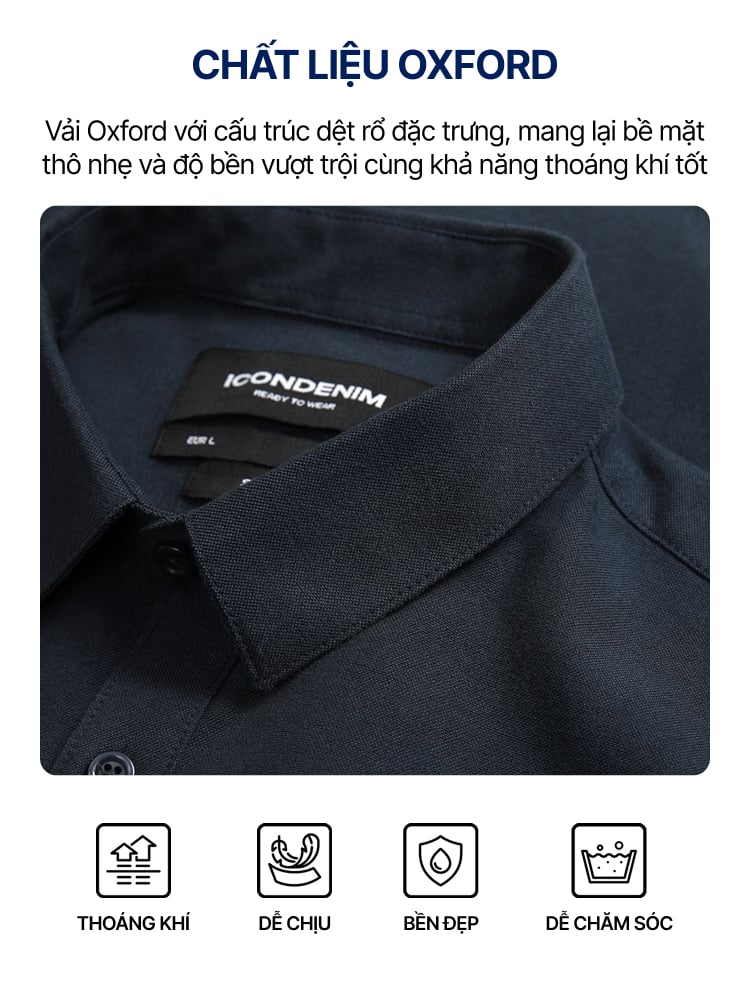 ICONDENIM® Áo Sơ Mi Oxford Nam Tay Dài Blank Color Embroider Form Slim