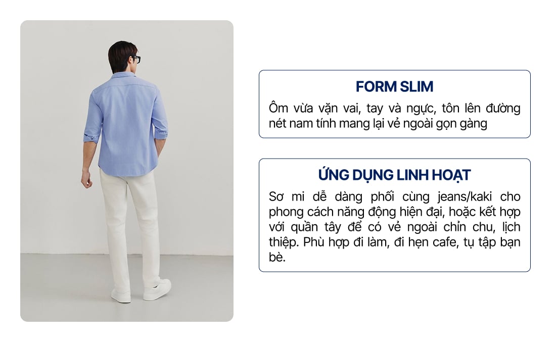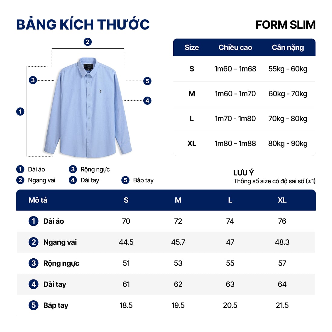 Áo Sơ Mi Oxford Nam Tay Dài Blank Color Embroider Form Slim