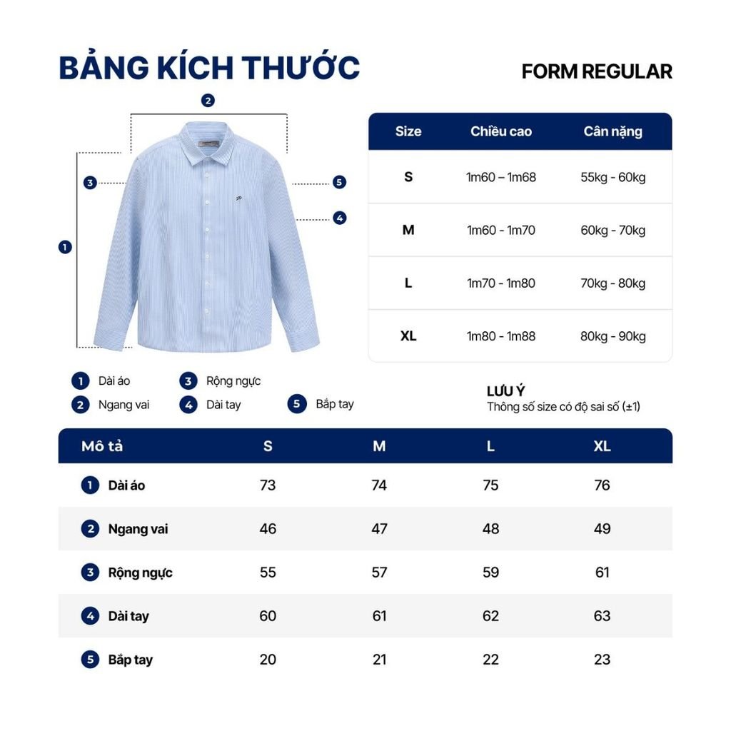 ► FORM REGULAR – LINH HOẠT & THANH LỊCHKiểu dáng Regular ôm gọn vừa phải, dễ phối cùng quần tây, kaki hay jeans. Tay dài cổ điển tạo vẻ ngoài lịch sự, thích hợp từ đi làm, gặp gỡ bạn bè đến các sự kiện trang trọng.