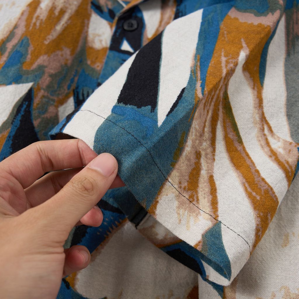 Chất vải linen in họa tiết độc quyền với bề mặt nhám nhẹ, thoáng khí và thấm hút mồ hôi tốt, phù hợp cho khí hậu nóng ẩm mùa hè. Linen giúp áo có độ rủ tự nhiên, giữ dáng không quá cứng, mang đến trải nghiệm mặc thoải mái và sang nhẹ đúng tinh thần mùa hè.