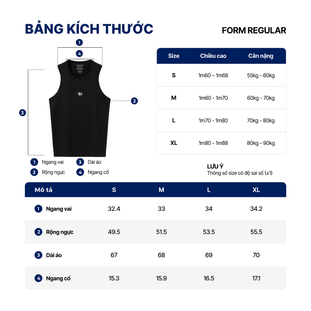 Form áo thiết kế vừa vặn thân người, ôm gọn vai ngực giúp tôn dáng mà vẫn dễ chịu khi vận động. Viền cổ và nách bo chắc chắn bằng chỉ đôi Kansai, giữ form tốt sau nhiều lần giặt.