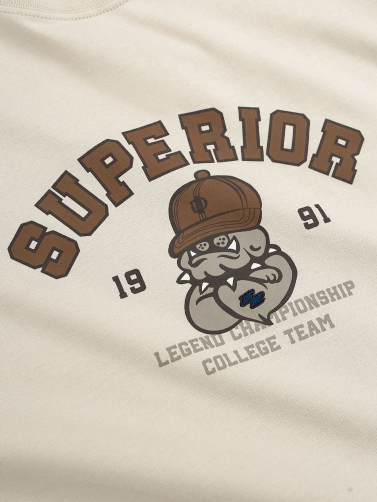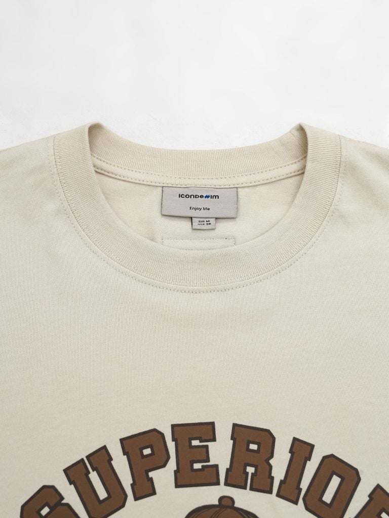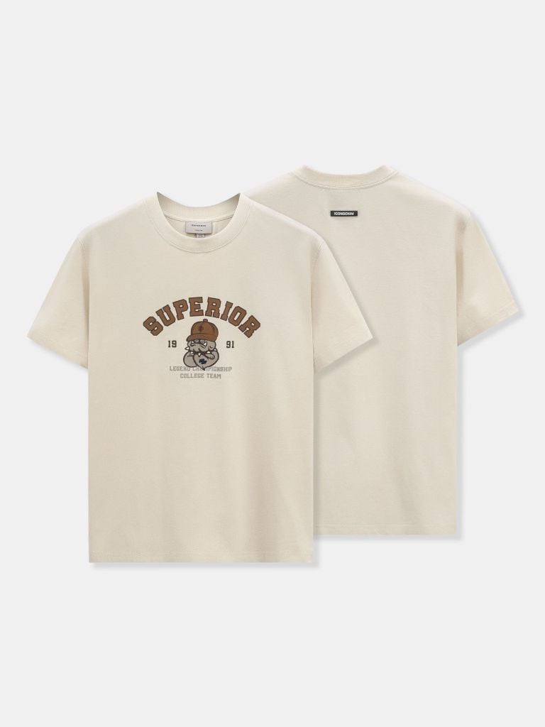 Phần thân trước sử dụng artwork “Superior Bulldog” in sắc nét với texture rõ ràng, tạo điểm nhấn cá tính nhưng vẫn giữ sự gọn gàng đặc trưng của ICONDENIM. Cổ áo bo dệt cùng màu vải chính, bền, ôm gọn mà không gây bí. Trên thân sau, detail cao su phát triển riêng tạo điểm nhấn tinh tế, bổ sung chất thời trang cho tổng thể.