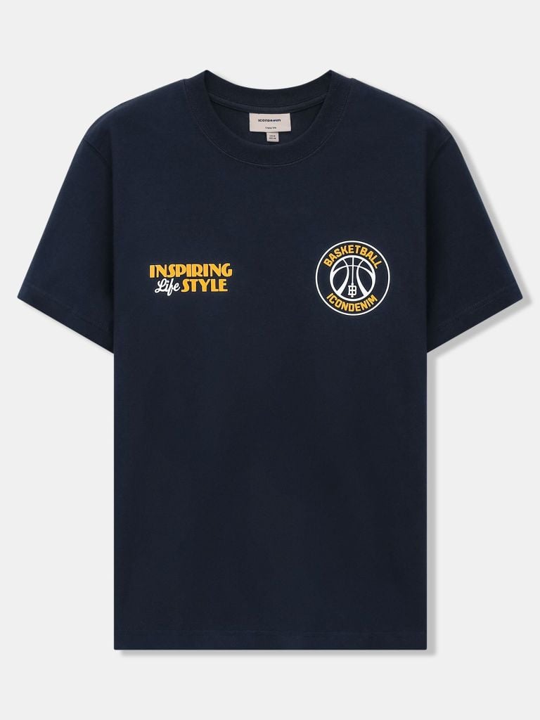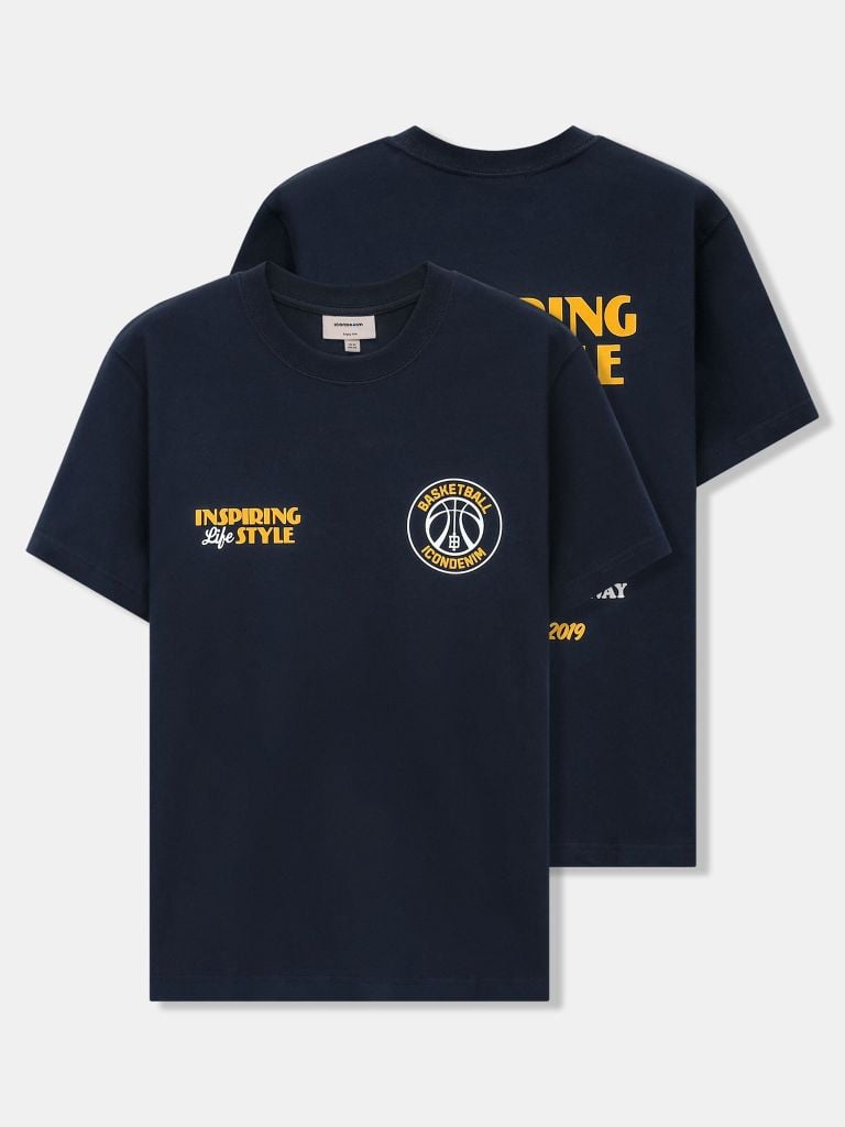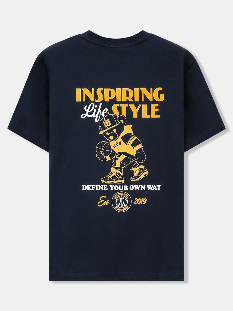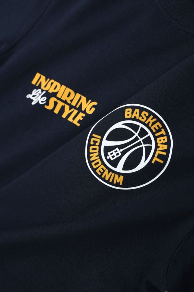 Thân trước sử dụng chi tiết in nhung, định vị kích thước theo file thiết kế thành phẩm, tạo điểm nhấn gọn gàng ở ngực áo. Thân sau kết hợp in nhung và in, bố cục lớn, rõ nội dung, mang tinh thần “Inspiring Life Style”, đảm bảo độ sắc nét và độ bền hình in sau nhiều lần giặt.
