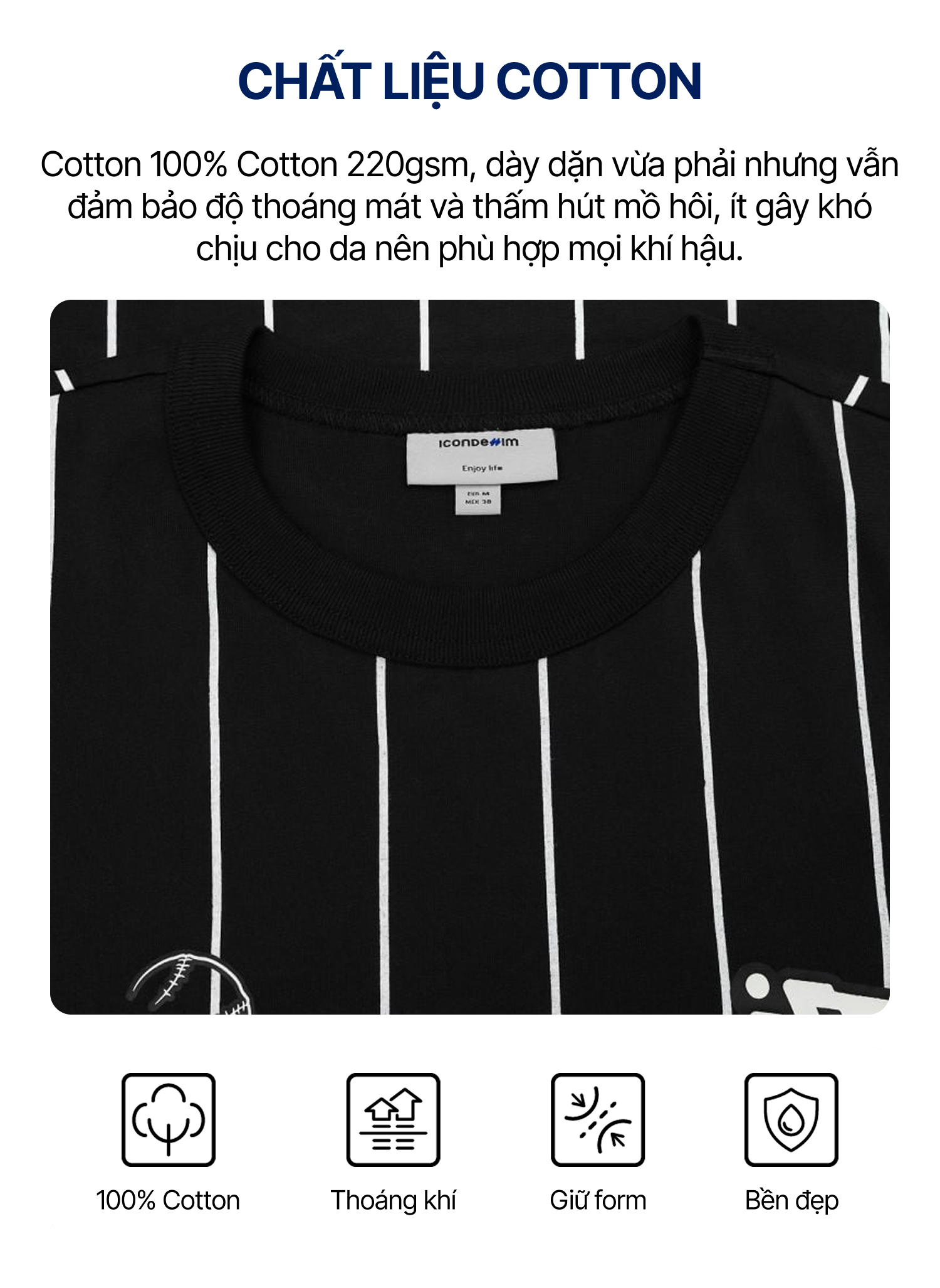 • Chất liệu: Thun cotton 220gsm 100% Cotton