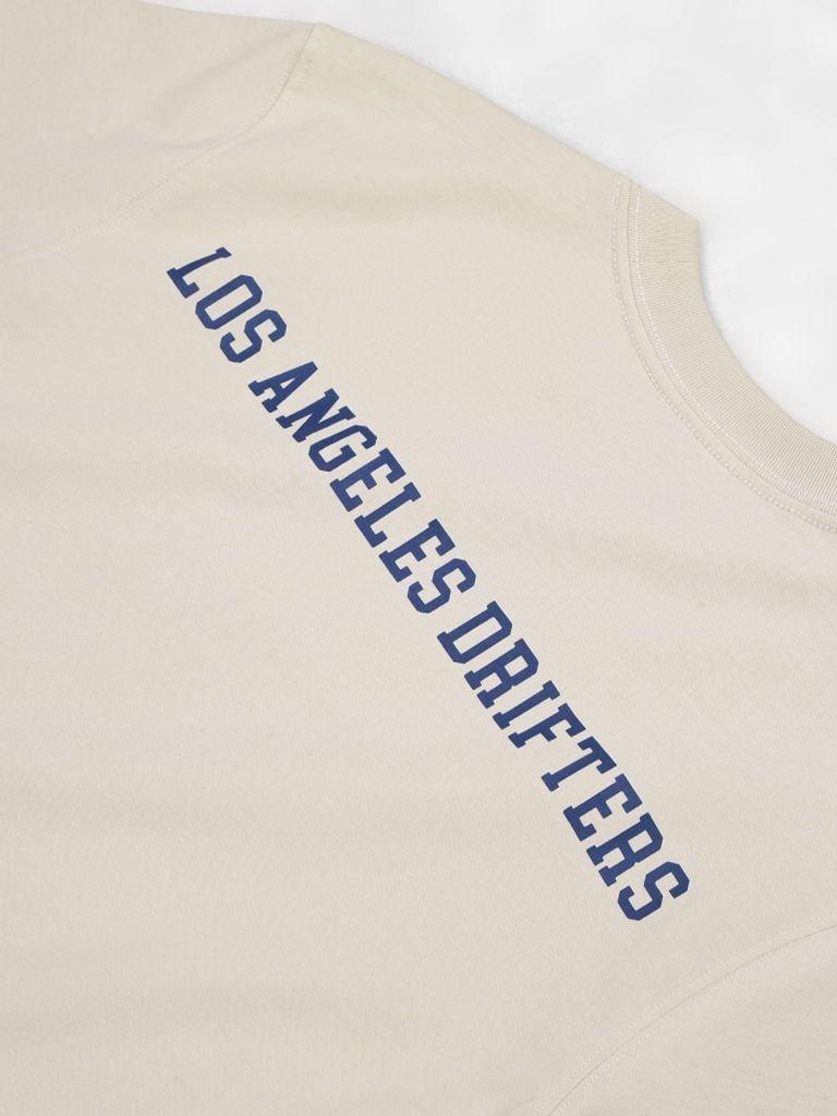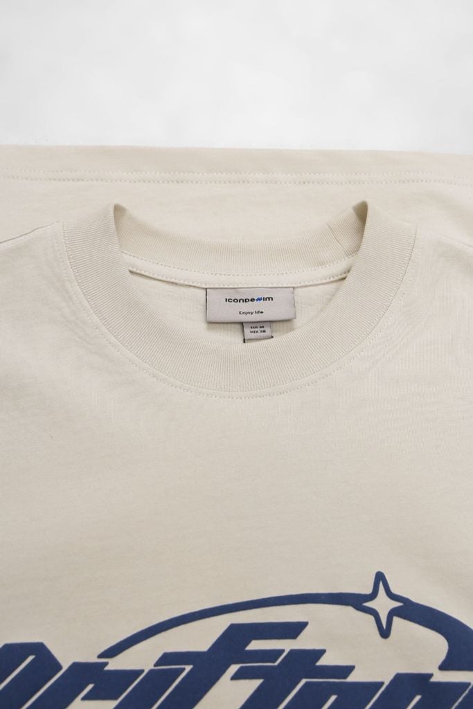 Thân trước sử dụng kỹ thuật in nổi sần (in giả nhung), bề mặt in có độ gồ nhẹ, cảm giác sờ rõ tay. Thân sau in chữ phẳng, canh giữa lưng, khoảng cách từ cổ xuống chuẩn theo spec kỹ thuật.