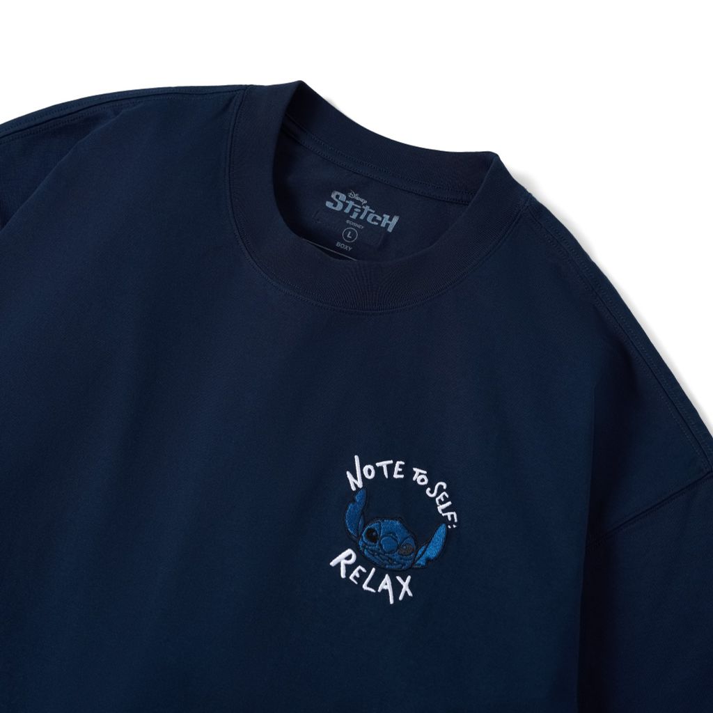 Mặt trước áo có chi tiết thêu nhỏ dòng chữ “NOTE TO SELF RELAX” cùng biểu cảm đáng yêu của Stitch, mang tinh thần tích cực, gần gũi. Chi tiết in dẻo bền màu, không bong tróc, kết hợp cùng tag cao su độc quyền phía sau cổ, nhấn mạnh chất lượng và bản quyền chính hãng Disney.