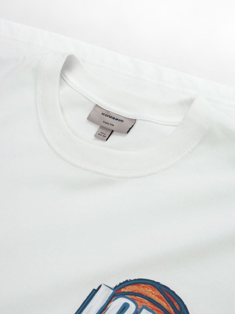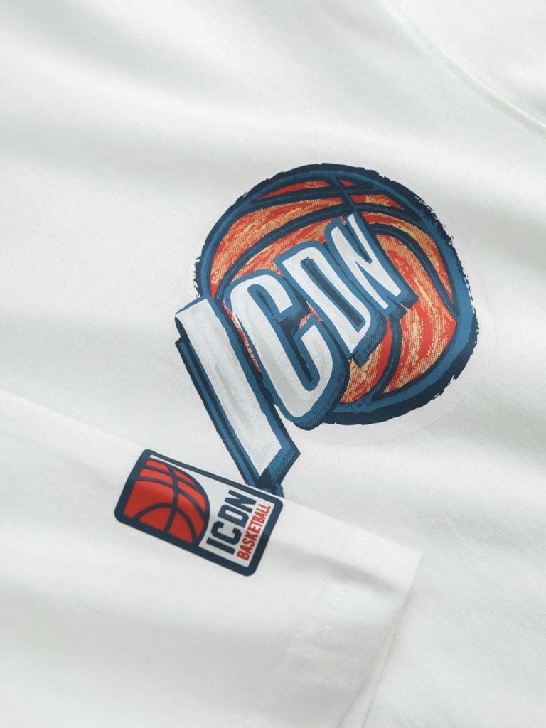 Mặt trước in trame graphic logo ICDN kết hợp cảm hứng bóng rổ hiện đại. Logo phối màu nổi bật, sắc nét, tạo điểm nhấn trẻ trung và thể thao. Chi tiết in tay đồng bộ, tăng nhận diện cá tính.