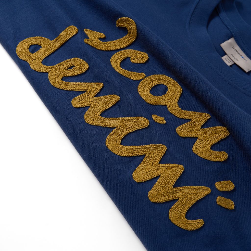 Thiết kế nổi bật với chi tiết thêu móc xích độc đáo cùng dòng chữ viết tay tinh tế phía trước. Kỹ thuật thêu này không chỉ thể hiện sự tinh xảo mà còn mang đến thông điệp về sự phát triển và năng động, thu hút mọi ánh nhìn.