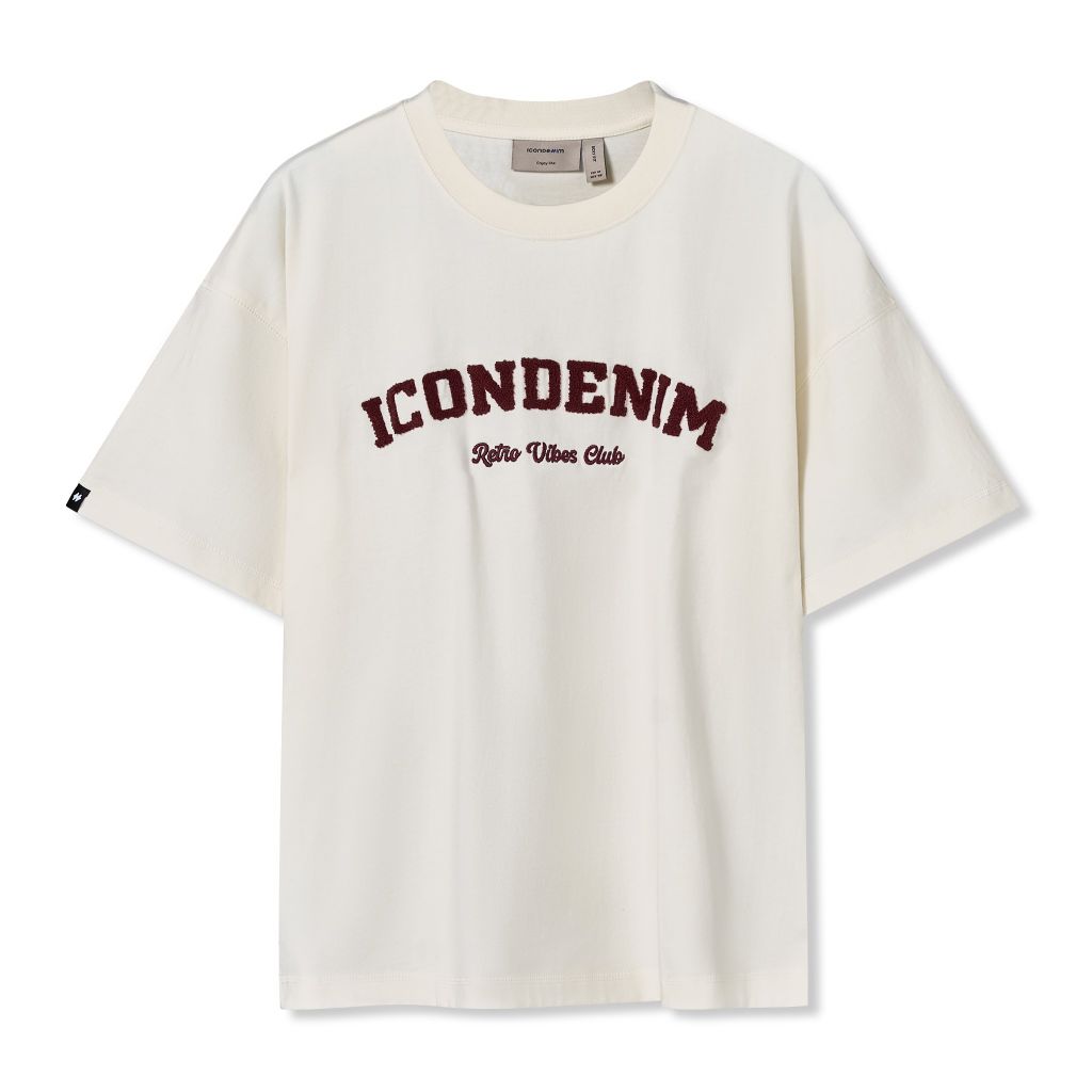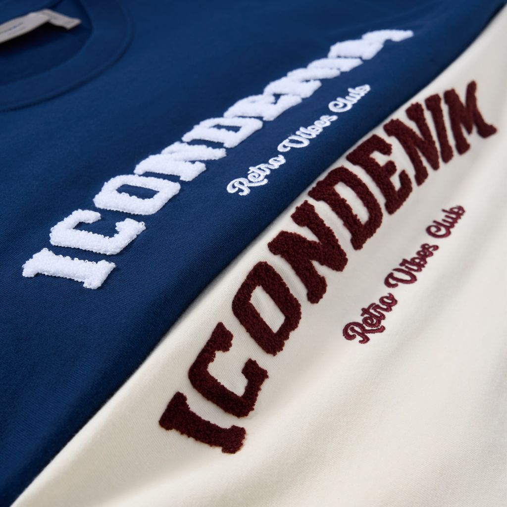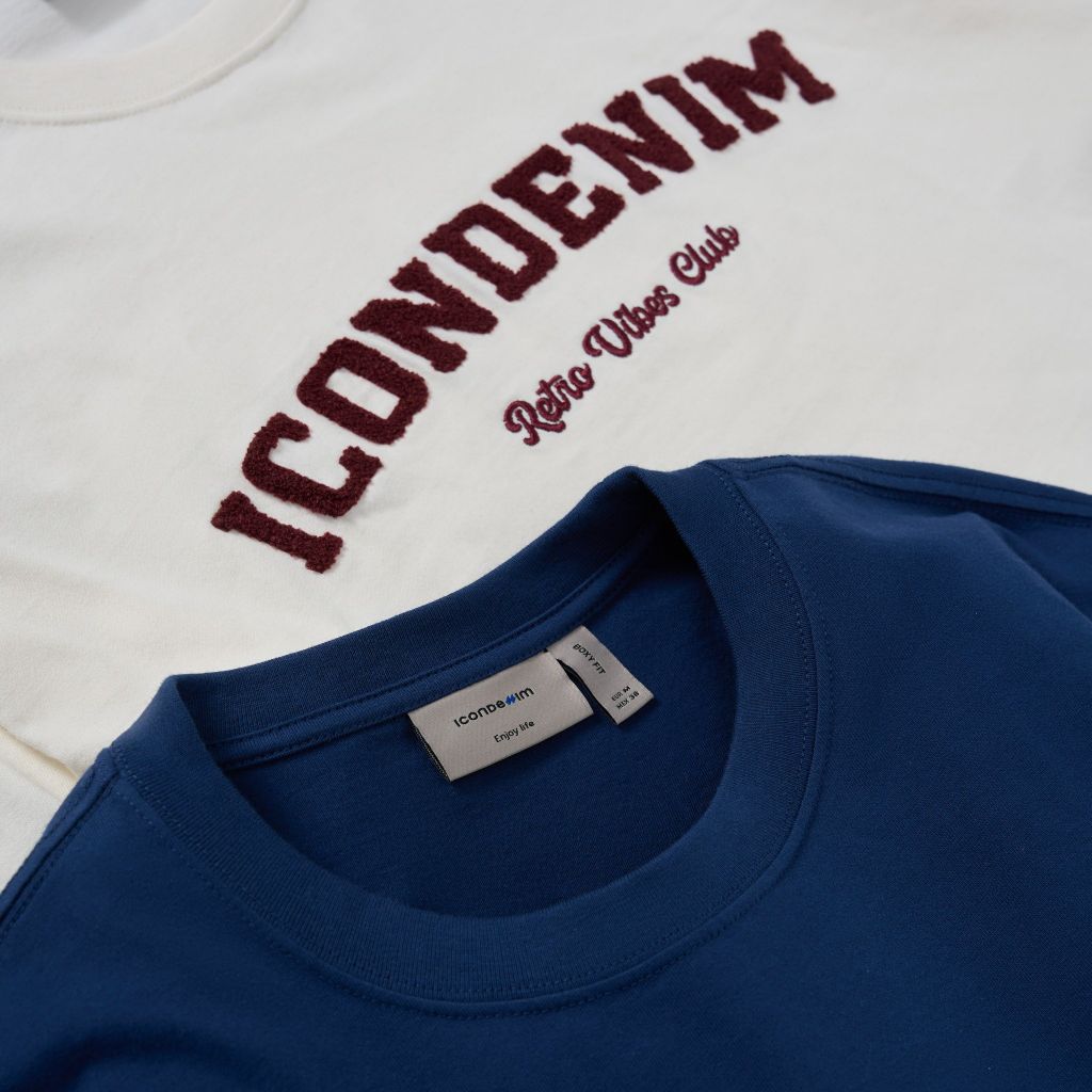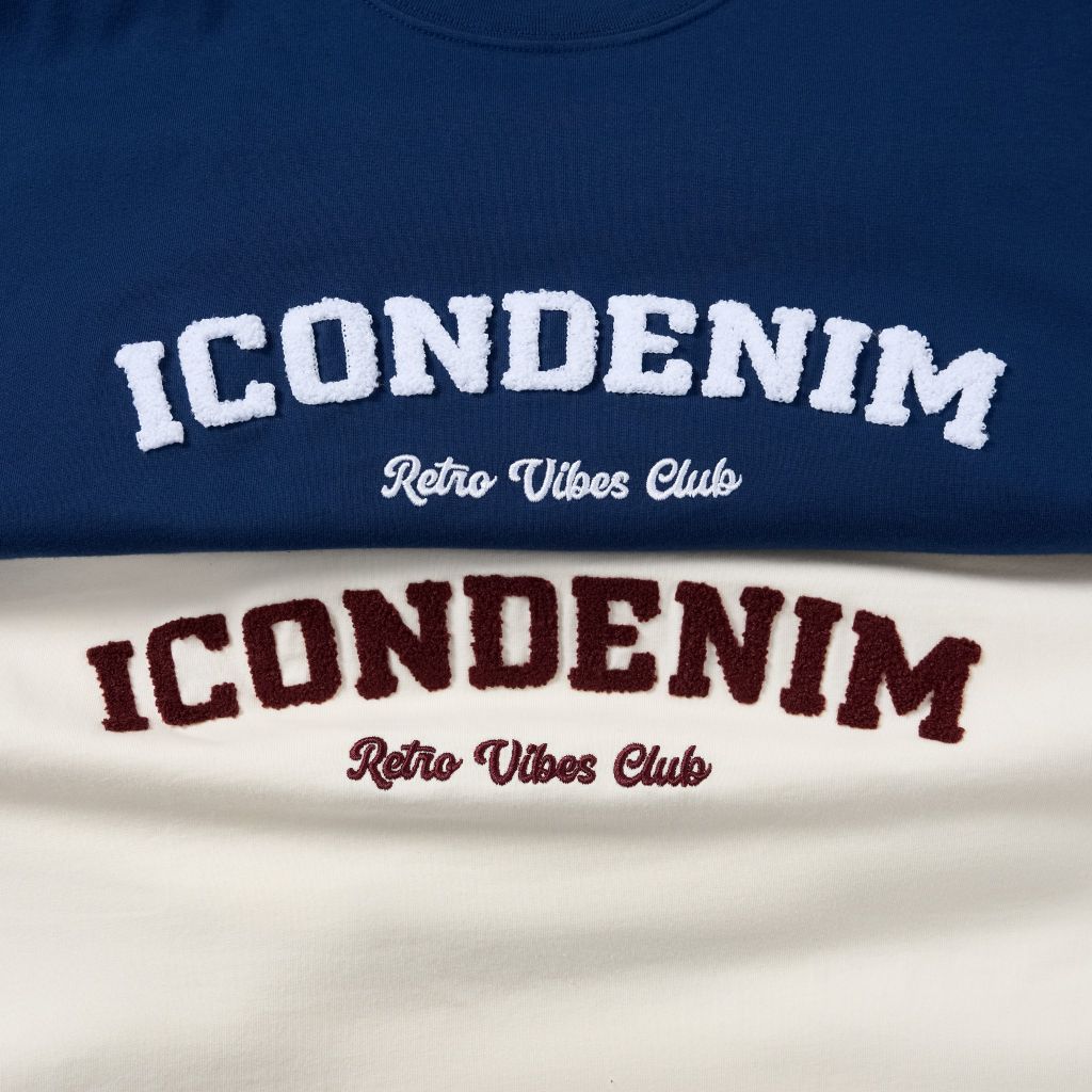 Áo nổi bật với chữ thêu xù ICON DENIM kết hợp hình thêu Retro Vibes Club, mang đậm chất Retro Sports cá tính. Đường may đánh bông cùng màu tạo hiệu ứng thị giác ấn tượng, thêm nét tinh tế cho thiết kế.