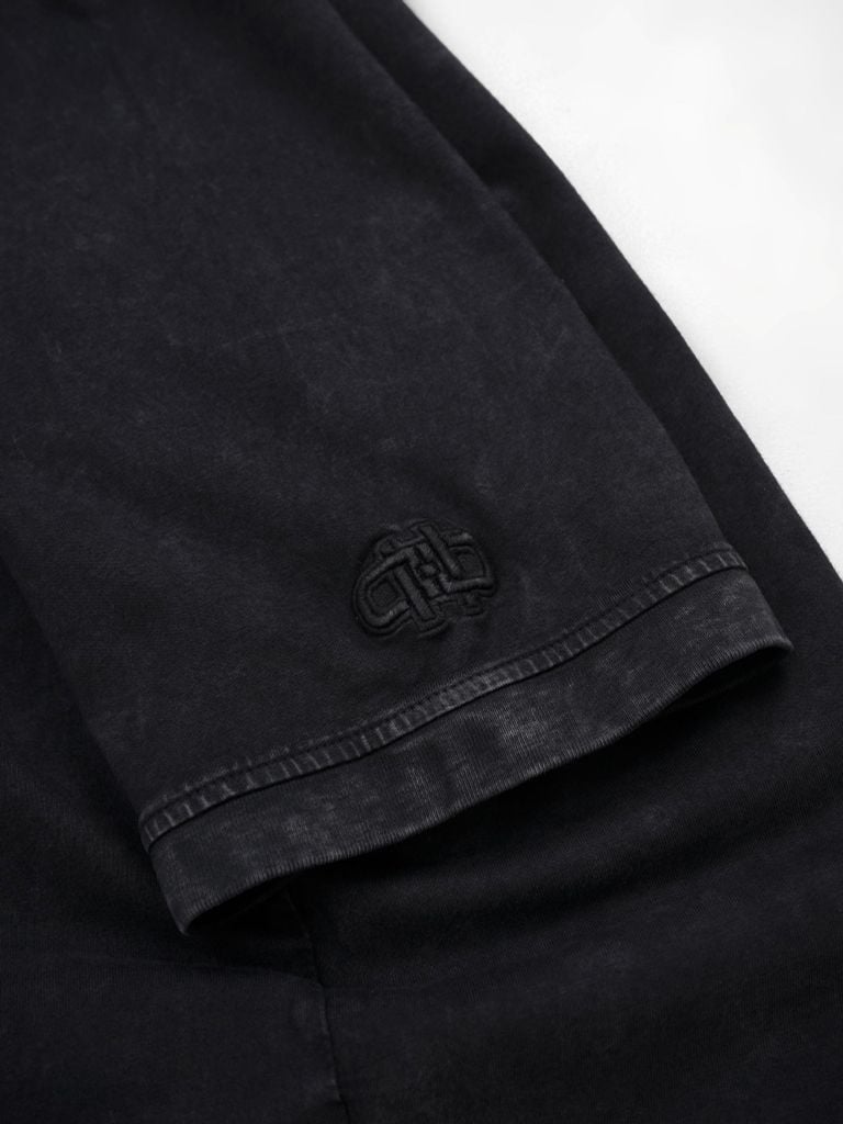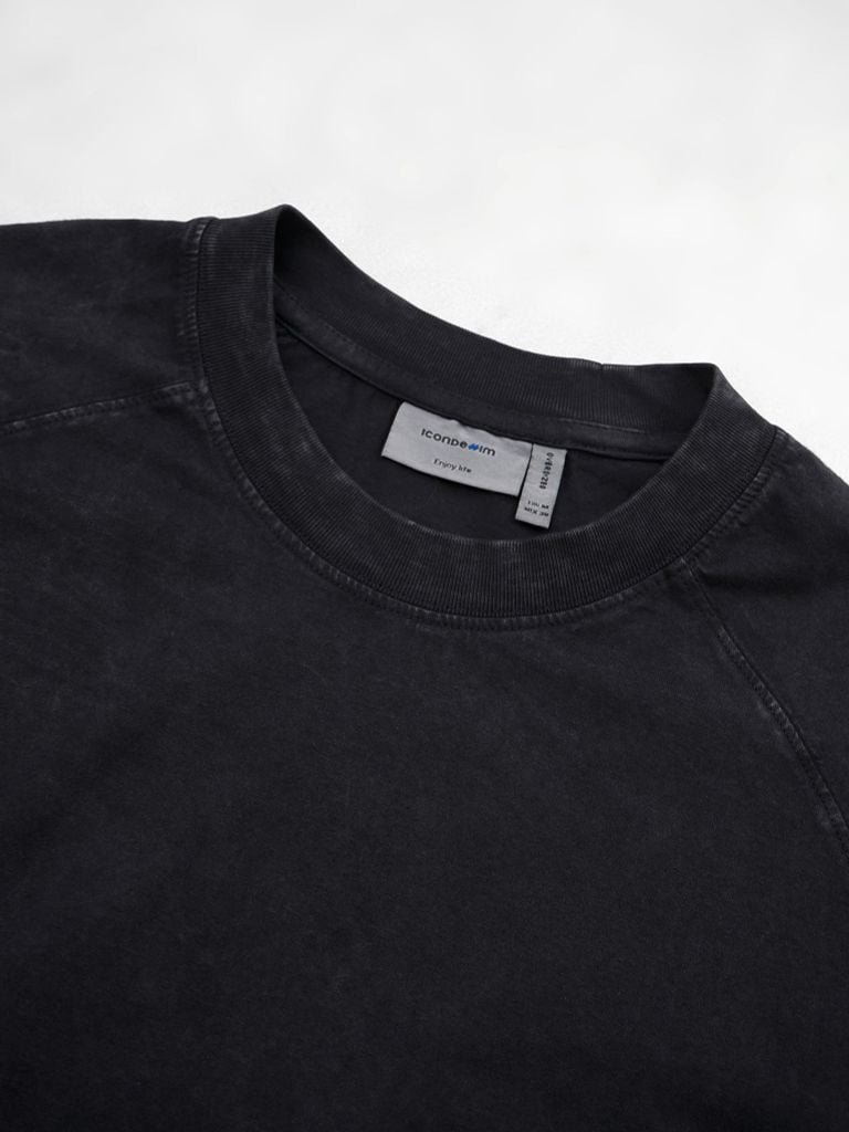 Phần cổ sử dụng bo rib to bản 3cm, kết hợp diễu may 2 kim để tổng thể bền đẹp hơn. Tay raglan giúp đường vai mềm hơn, tạo cảm giác thoải mái khi cử động. Bo tay to bản 2.5cm cùng chi tiết thêu nhấn ở tay áo tăng thêm điểm nhận diện nhưng vẫn giữ tinh thần tối giản.