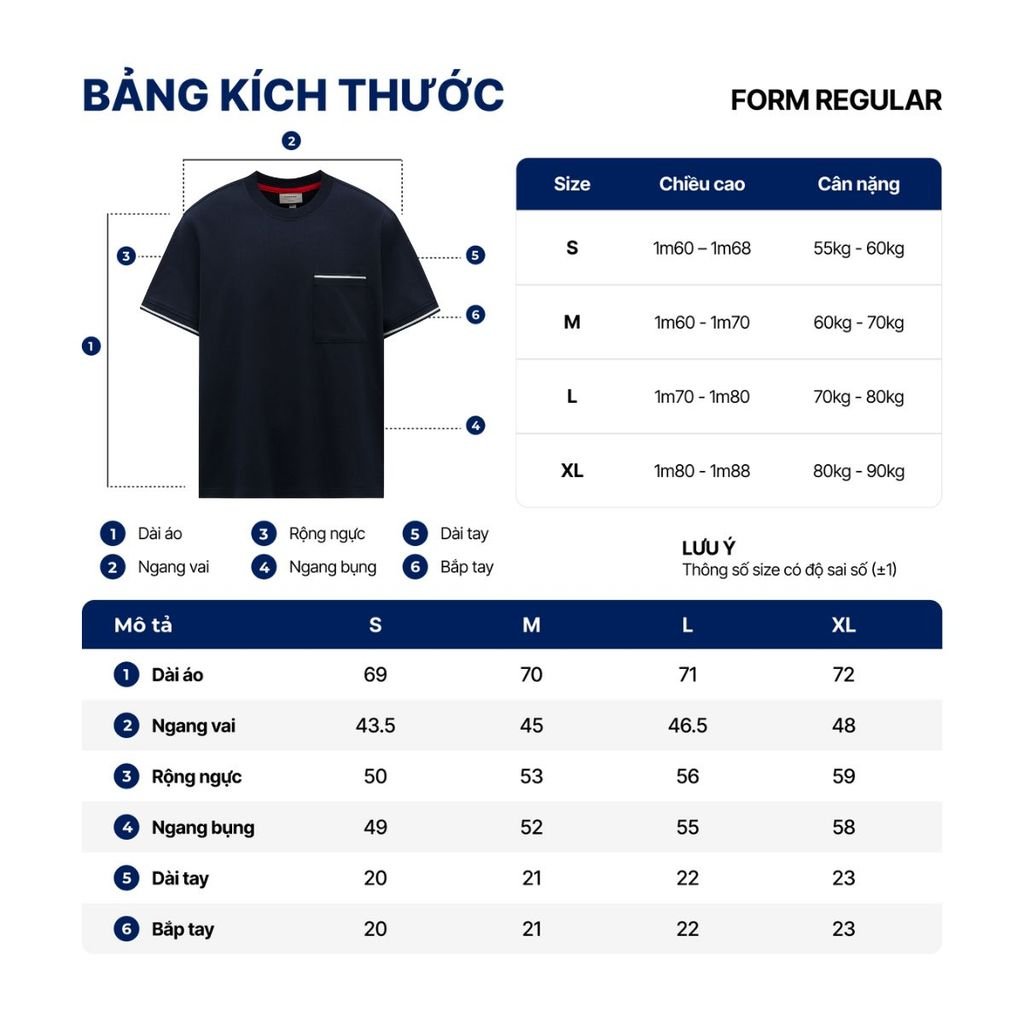 ► FORM REGULAR – LINH HOẠT & DỄ PHỐIKiểu dáng regular vừa vặn, dễ mặc cho nhiều dáng người. Lai sau dài hơn lai trước 1,8cm, tạo sự cân đối và thoải mái trong vận động. Dễ phối với quần jeans, kaki hoặc short cho nhiều hoàn cảnh sử dụng.